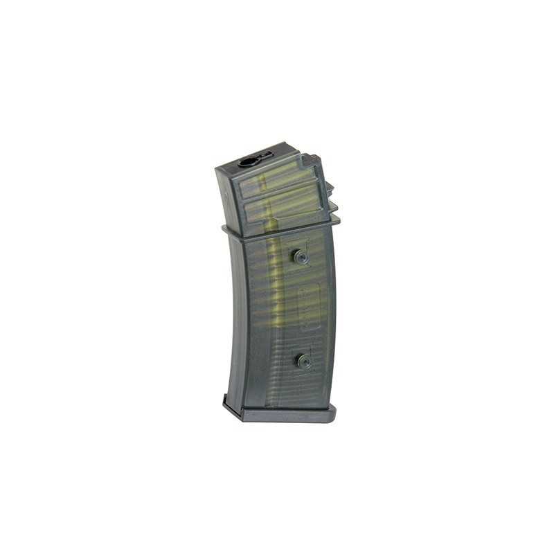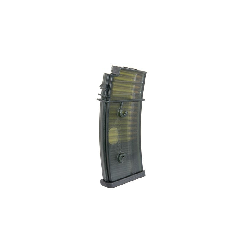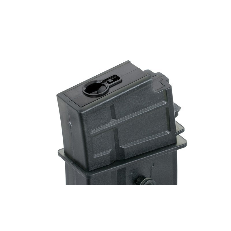 30-Round Real-Cap & 135-Round Mid-Cap mode switchable. One button easy switch from mid-cap to real magazine capacity. One piece magazine shell providing more durability. Made of fiber reinforced polymer. Applied with high strength material providing high-quality external texture. Special design of follower makes sure no BB left after the final shot. Compatible with most AEG at the market, including Ares, Cyma, APS, G&G, E&L etc.