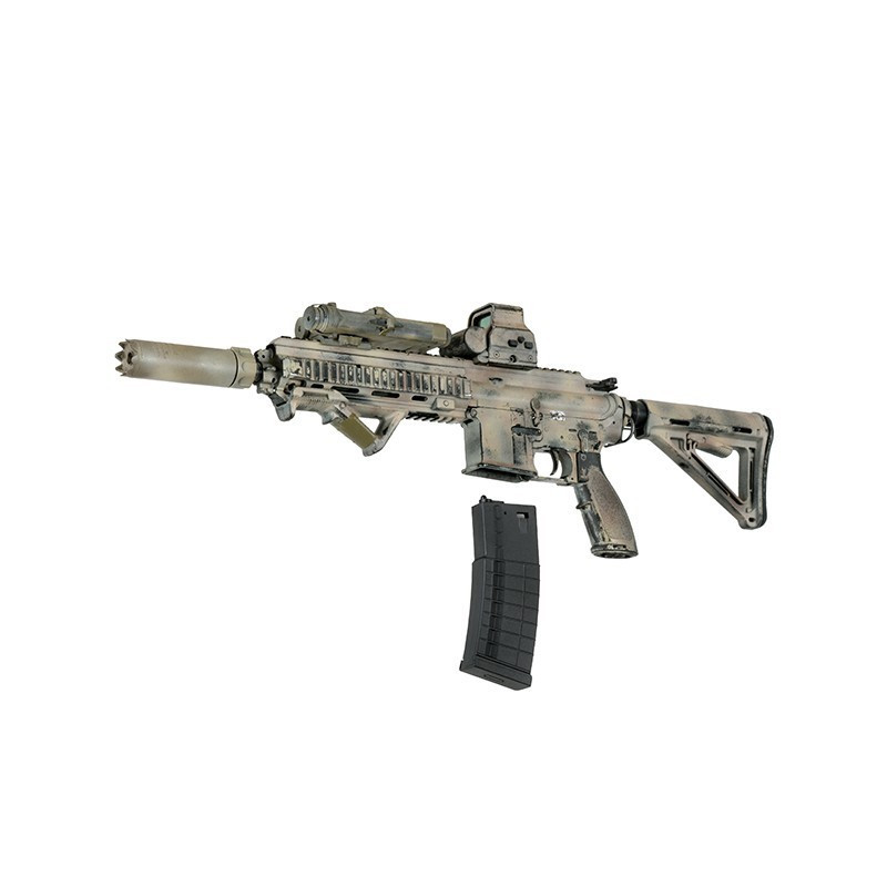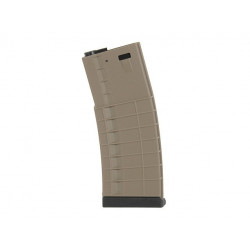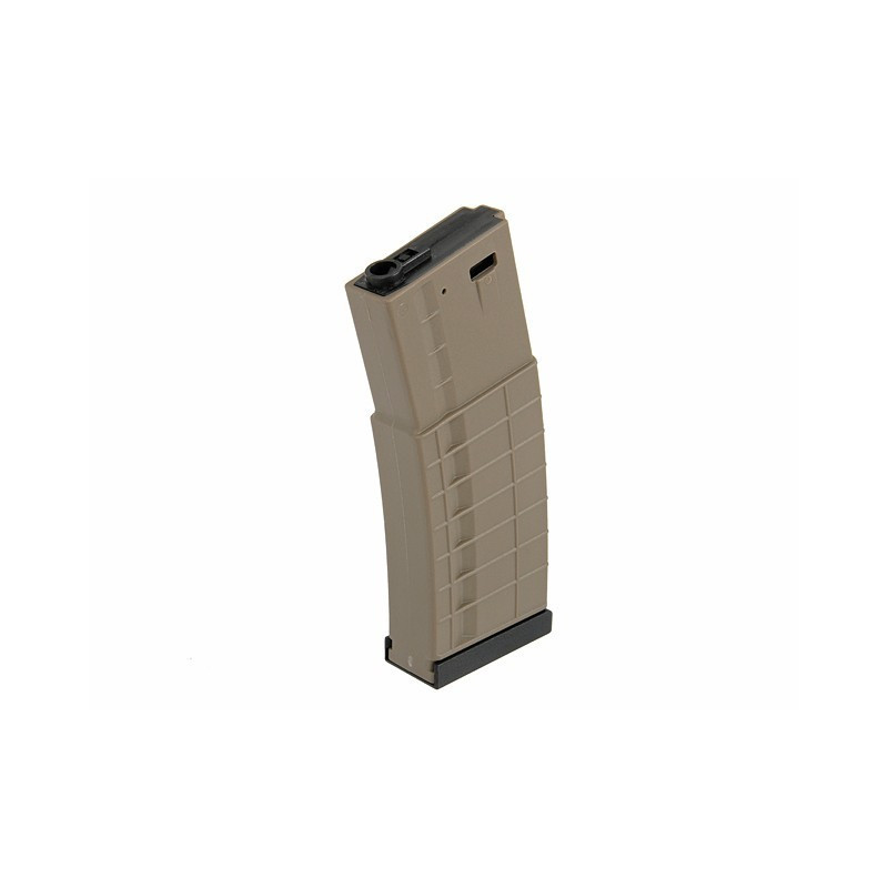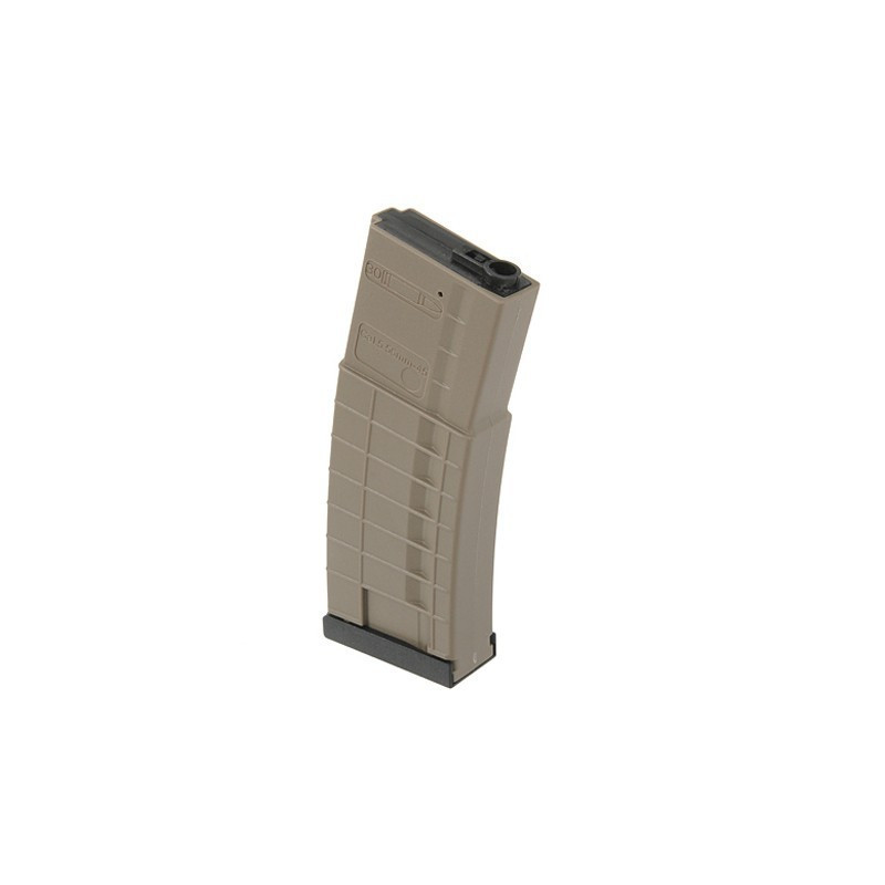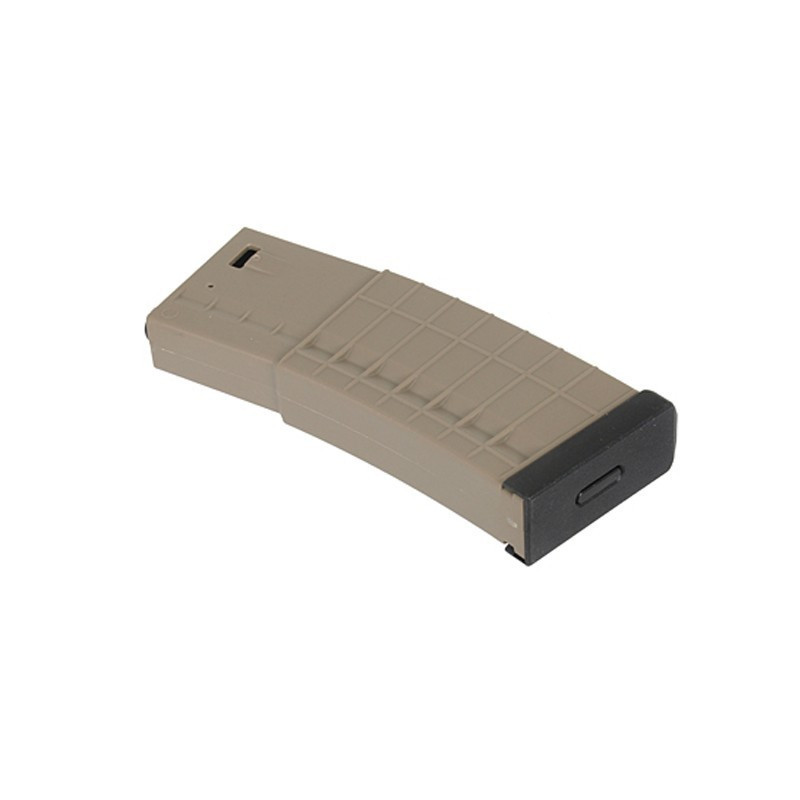 30-Round Real-Cap & 130-Round Mid-Cap mode switchable. One button easy switch from mid-cap to real magazine capacity. One piece magazine shell providing more durability. Made of fiber reinforced polymer. Applied with high strength material providing high-quality external texture. Special design of follower makes sure no BB left after the final shot. Compatible with most AEG at the market, including Ares, Cyma, APS, G&G, E&L etc.