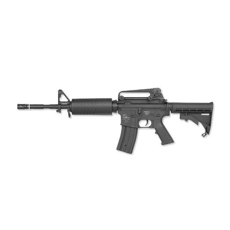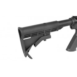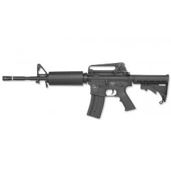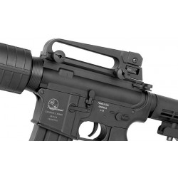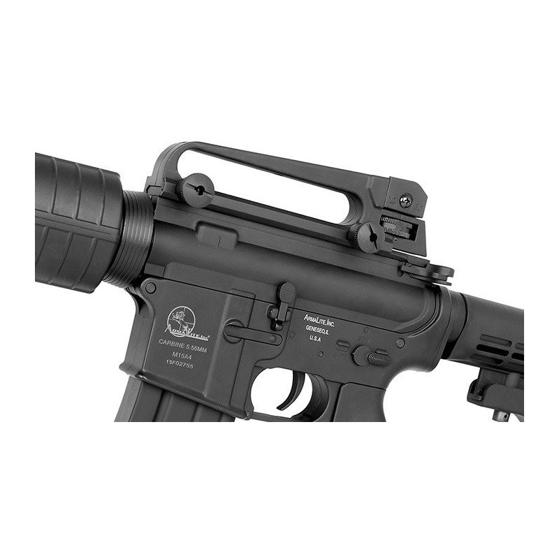 This M15 Airsoft carbine with authentic ArmaLite markings, has an ideal size for all sorts of Airsoft use, CQB, open-field or just backyard target practicing. A Hi-cap magazine with 300 BB's provides plenty of shots before reloading is necessary. The receiver features a top 21mm rail for mounting optical sights, a detachable carry handle with adjustable rear sights is included. The Airsoft carbine itself is built with metal gear box. The battery is stored in the hand guard.