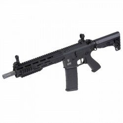The inclusion of a rotary HOP-up unit, paired with a Maple Leaf HOP-up bucking gives this AEG impressive range and accuracy the likes of which are usually reserved for upgraded AEGs. The built-in electronic trigger unit gives the rifle an excellent trigger response, and eliminates the possibility of semi-auto lockup whilst also providing a devastating rate of fire for those moments you need to suppress the enemy! All of these high quality internal features are wrapped up in a strong alloy receiver with a perfectly smooth matt black finish, with a CNC machined aluminium handguard and alloy buffer tube finished with equal perfection.