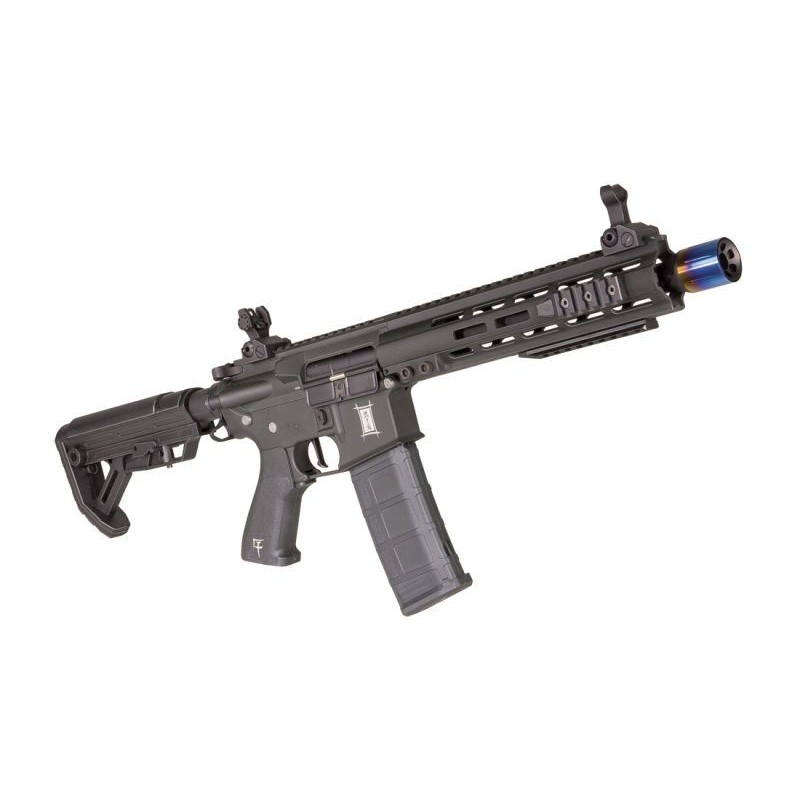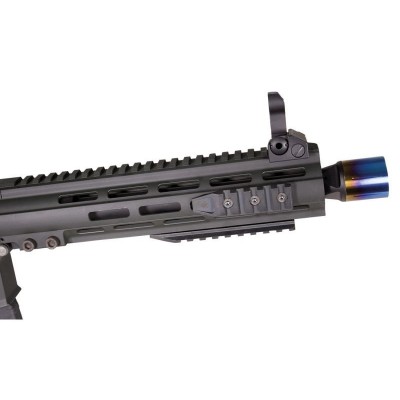 The inclusion of a rotary HOP-up unit, paired with a Maple Leaf HOP-up bucking gives this AEG impressive range and accuracy the likes of which are usually reserved for upgraded AEGs. The built-in electronic trigger unit gives the rifle an excellent trigger response, and eliminates the possibility of semi-auto lockup whilst also providing a devastating rate of fire for those moments you need to suppress the enemy! All of these high quality internal features are wrapped up in a strong alloy receiver with a perfectly smooth matt black finish, with a CNC machined aluminium handguard and alloy buffer tube finished with equal perfection.