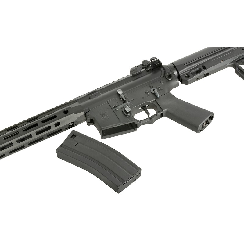 The MK18 SA-E26 EDGE is a replica of the Specna Arms, which includes a licensed Daniel Defense 20mm handguard, as seen on the MK18 used by the Special Forces. Also features an ASTER Mosfet, quick spring change, rotating hop-up chamber, 6.03mm precision barrel, serial number and zinc, aluminum, steel and polymer externals.