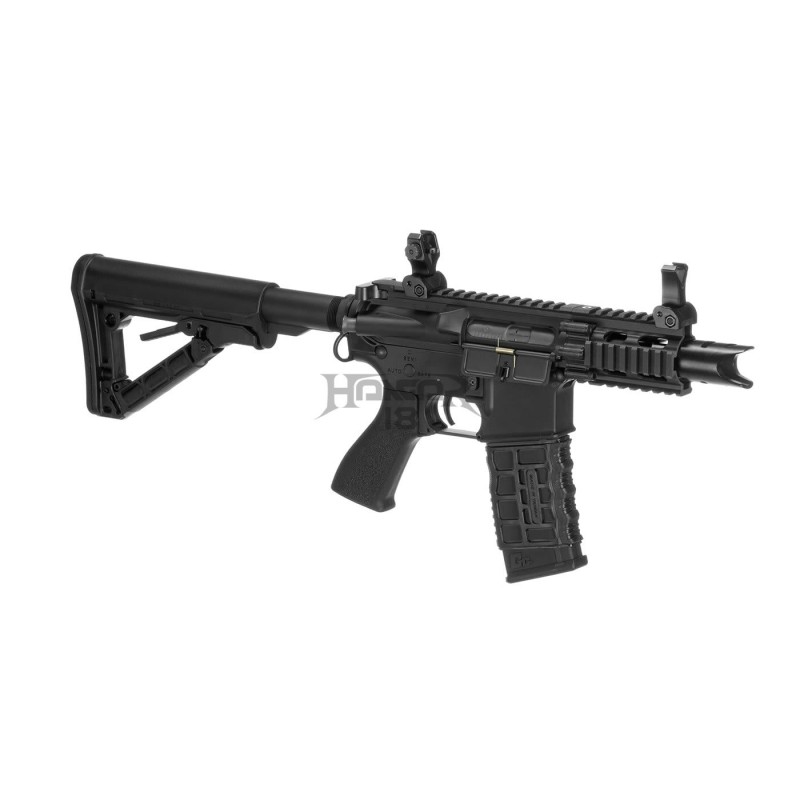 The barrel is outfitted with a 14mm CCW thread and can take different muzzle devices, suppressors, and tracers. The retractable stock made of high-quality polymer is comfortable to use. It is also easy to handle in confined spaces and simple to stash. The battery is placed inside the buffer tube.