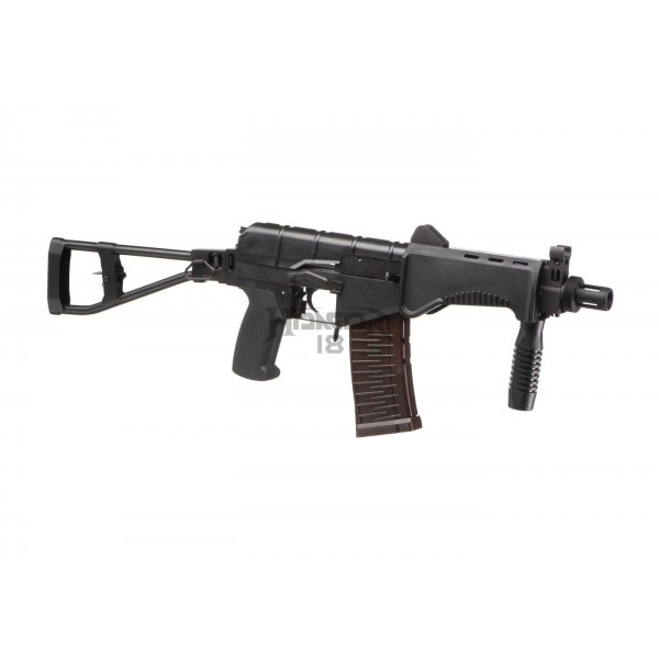 SR-3M from LCT is one of the most iconic special-purpose PDW replicas in manufacturer selection. This version is supplied in classic black furniture with a brown magazine and a muzzle device integrated with a thread for a dedicated silencer.
