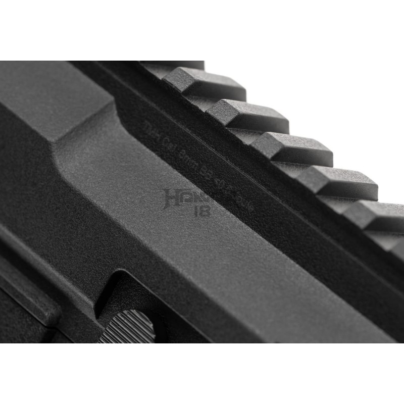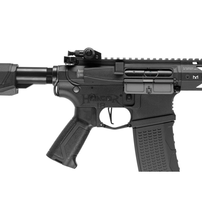 The barrel is outfitted with a 14mm CCW thread and can take different muzzle devices, suppressors, and tracers. The retractable stock made of high-quality polymer is comfortable to use. It is also easy to handle in confined spaces and simple to stash.