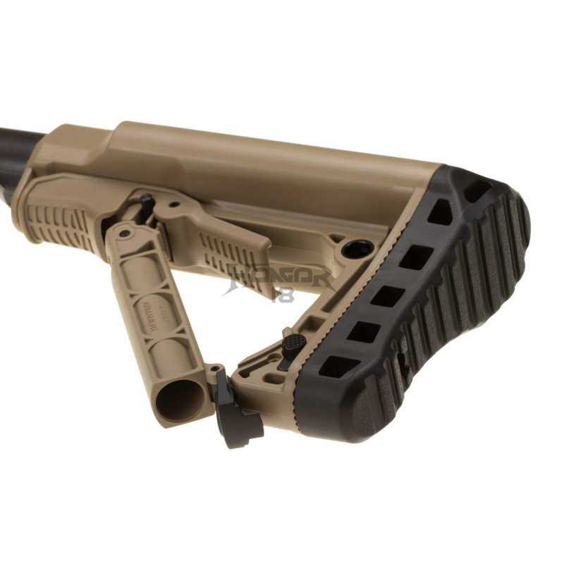 The barrel is outfitted with a 14mm CCW thread and can take different muzzle devices, suppressors, and Tracers. The retractable stock made of high-quality polymer is comfortable to use. It is also easy to handle in confined spaces and simple to stash. The battery is placed inside the buffer tube. MOSFET-equipped V2 gearbox is paired with an innovative ETU system for superb trigger reaction time and Lifetime.
