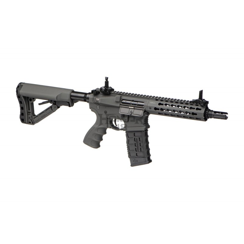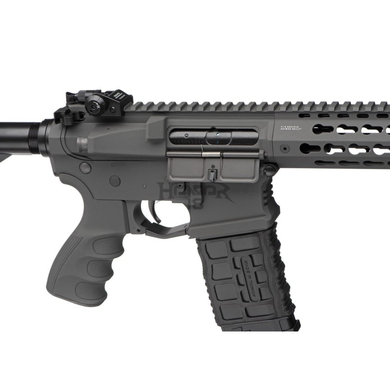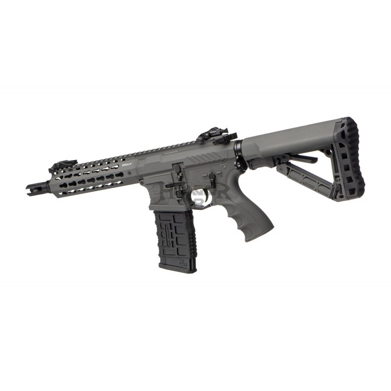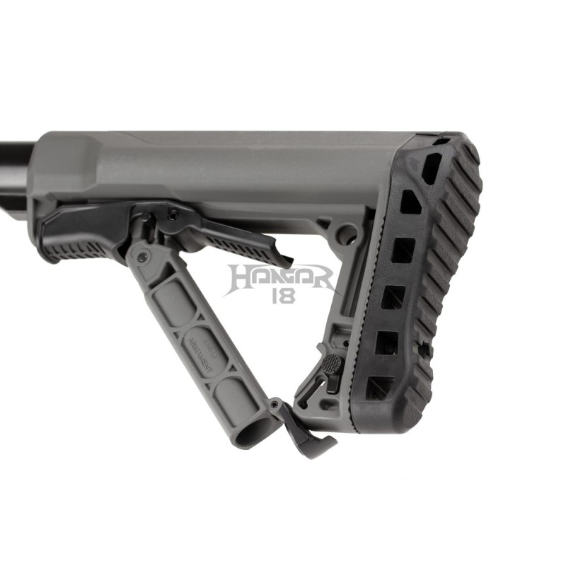 The barrel is outfitted with a 14mm CCW thread and can take different muzzle devices, suppressors, and Tracers. The retractable stock made of high-quality polymer is comfortable to use. It is also easy to handle in confined spaces and simple to stash. The battery is placed inside the buffer tube. MOSFET-equipped V2 gearbox is paired with an innovative ETU system for superb trigger reaction time and Lifetime.