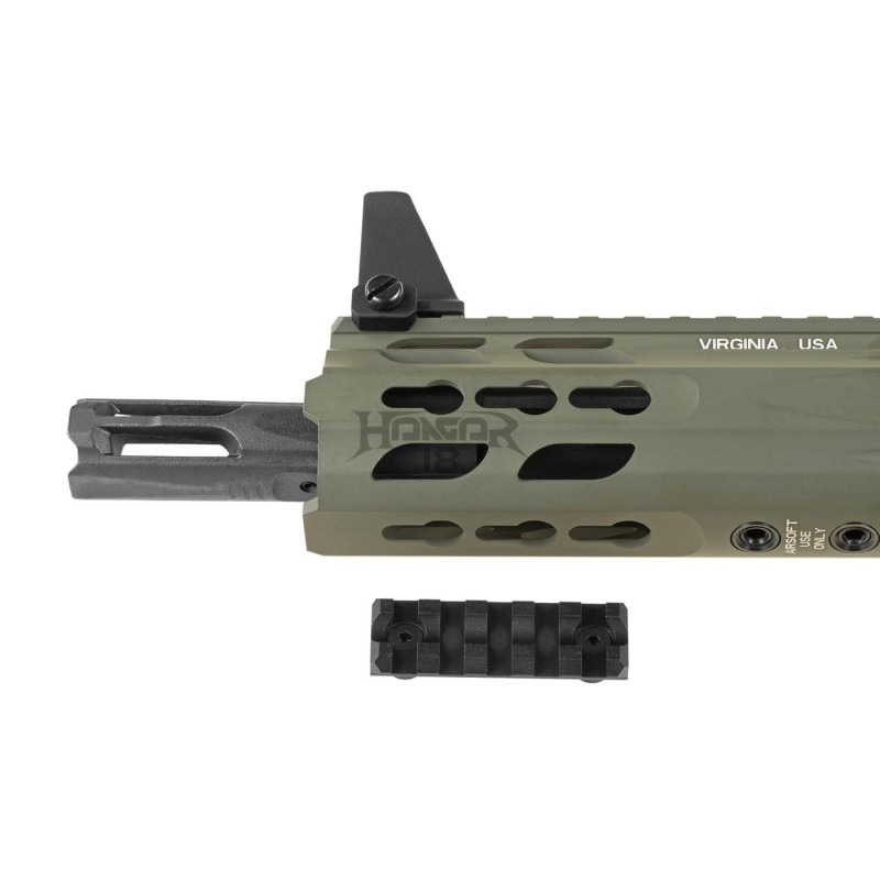 A billet style aluminium alloy receivers are designed to be compatible with almost all M4 style parts and accessories. Flared magwell and enlarged trigger guard at the first glance looks like small changes, but when you pick up this replica and give it couple rounds, it just becomes clear that those changes are great for improving reloading and engagement time. Beyond that those custom receivers just looks great.
