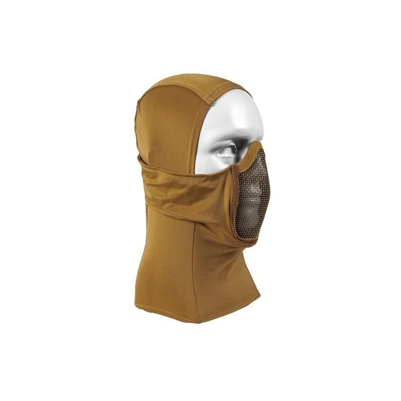 A full balaclava made of thermoactive material is equipped with a steel mesh mask located in the face part of the balaclava. The use of an appropriate material improves heat and sweat dissipation and covers the entire head.