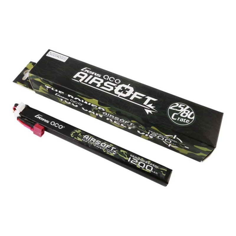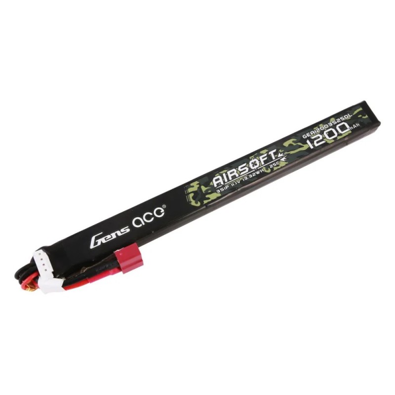 Gens ace 25C 1200mAh 3S1P 11.1V Airsoft Gun Lipo Battery with mini Tamiya Plug Suitable for AK 47 long slim stick pack.