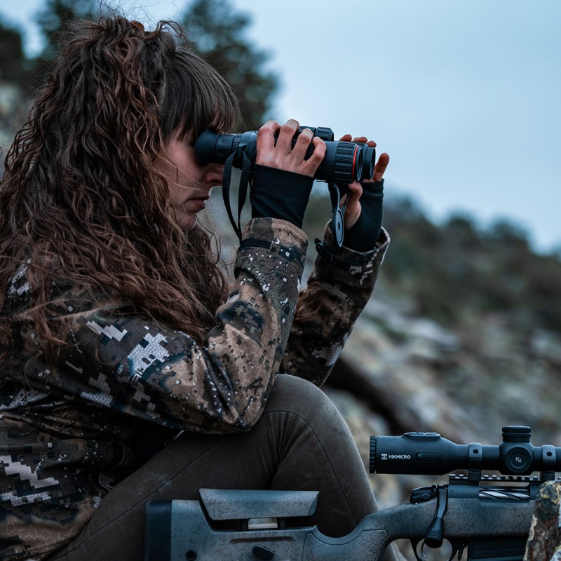 HIKMICRO HABROK 4K HE25L 5.5-22X60 is a powerful and innovative digital thermal binocular specially designed for daytime and twilight use. Combined with 256 x 192 thermal detector, advanced 4K digital detector for 5.5x-22x @60mm lens and 1,000m laser rangefinder, this all-in-one binocular can be mainly applied in forest and field hunting, bird watching, animal searching, adventure and rescue in various weather conditions.