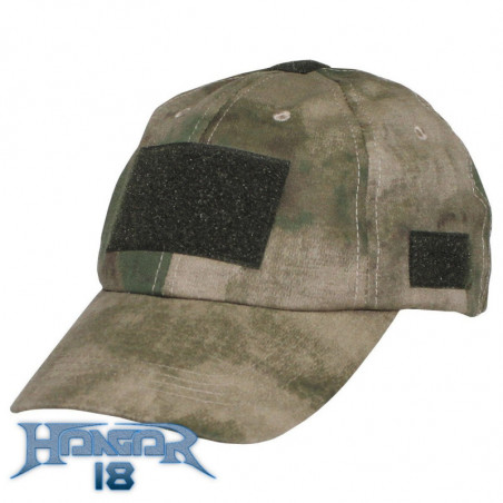 Adjustable baseball cap equipped with a set of soft Velcro panels for ID/morale patches and other items. Intended for use in hot weather conditions. Mid-depth cut works with variety of LE/Mil headgear systems.