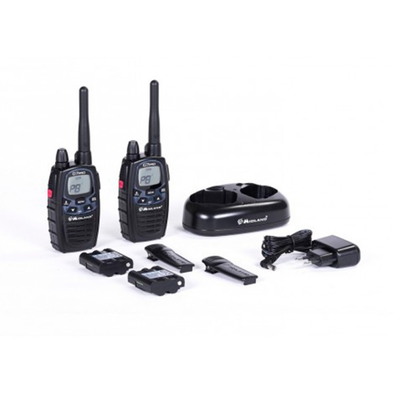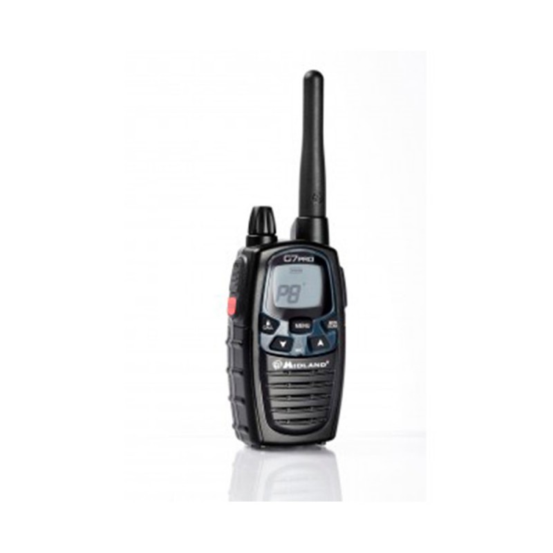Midland walkie talkie with a more modern and robust design and LCD screen. Its main features include its new improved audio level, the SCAN function and the Dual PTT mode that allows you to transmit at high or low power in order to increase battery life.