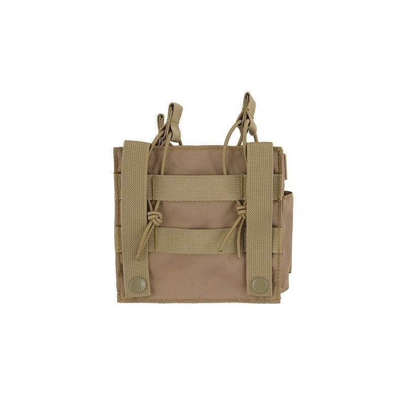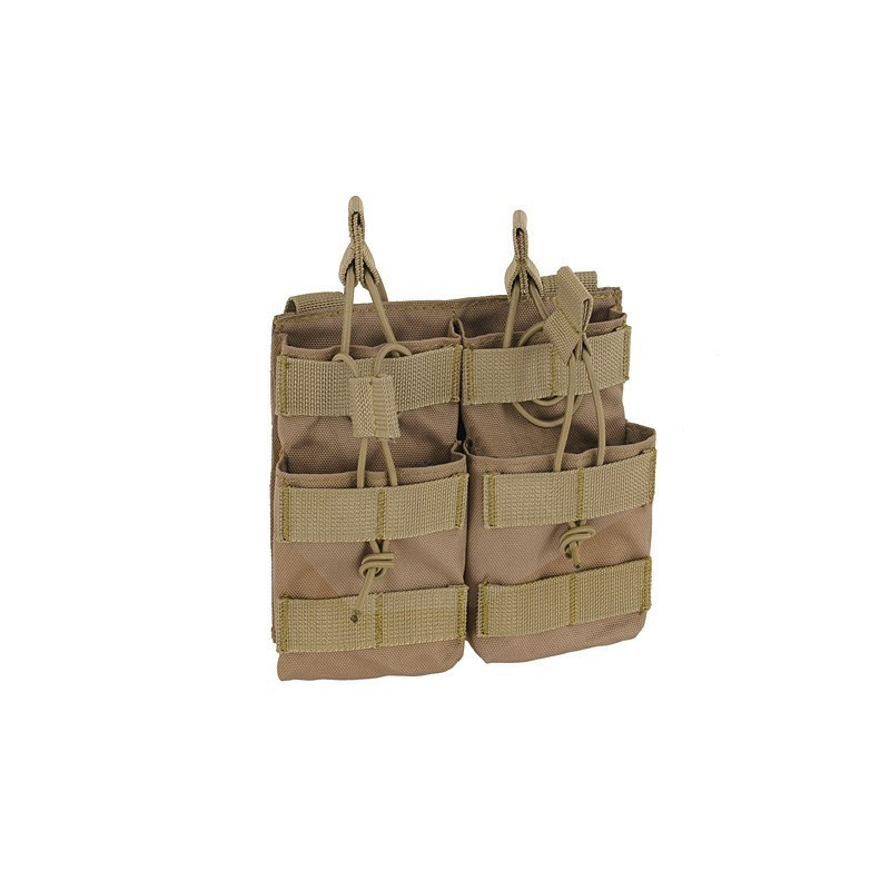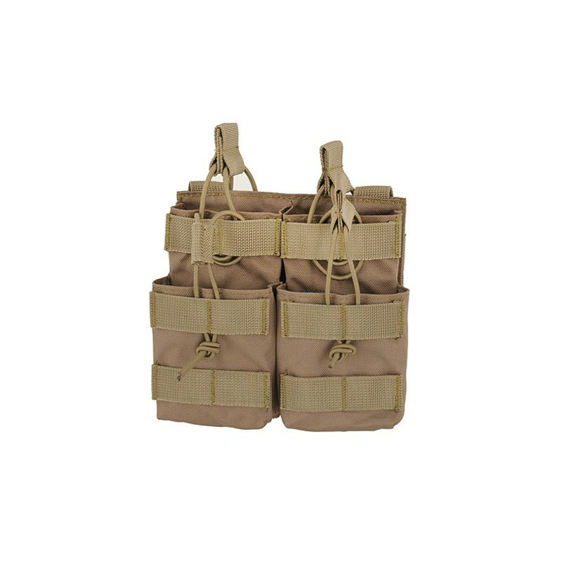 Magazine pouch can hold 4x5.56 style magazines (M4 / AR-15 / M16 / ACR / FAMAS / SCAR-L / TAVOR / SA80 / Galil / Type 89 / F2000 / AUG) or many other accessories. The open design provides fast reload and a additional rubber cord with a comfortable grip protects magazine from falling. Compatible with all MOLLE platforms.