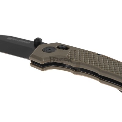 The blade is made of a 3.5mm thick 440C steel in a black coating and rigged with a reliable thumb stud for fast deployment.