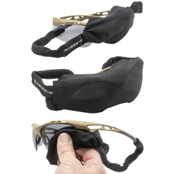 Black ballistic goggles with box and two lenses (dark and transparent). Elastic tape fit. Lens in polycarbonate. Built-in fan to prevent lens fogging.