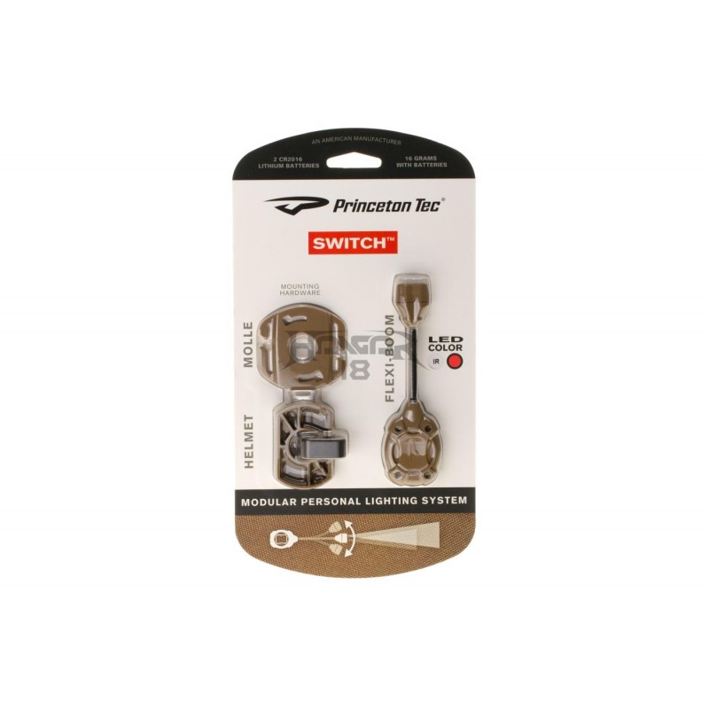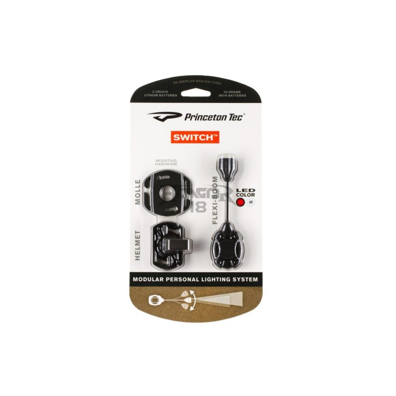 A top-mounted button is used to operate and cycle headlamp modes. Princeton Tec versatile mounting system is integrated with the Switch MPLS. This solution enables attachment to PALS/Molle platforms, ARC, and Picatinny rails. A flexible boom allows directing the light source in the correct direction.