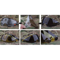 - helmet carrying device with 4 adjustable straps and clip fasteners