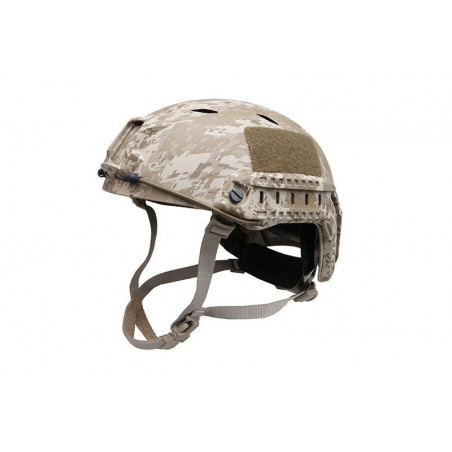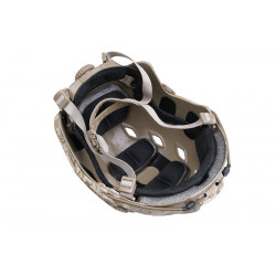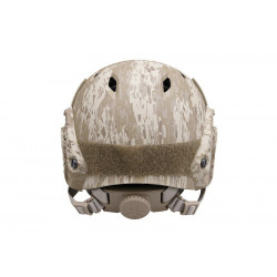 On the outside, the helmet is equipped with an integrated night vision goggles mount which is equipped with additional hooks that are placed on flexible bands which’s task it to increase the NVG’s stability. On both of the sides of the helmet, there are universal mounting rails for additional accessories to be mounted. A major part of the helmet’s side and back surface is covered with hooks and loops fastener which can be used to mount patches, identification elements or IR and visible light markers.