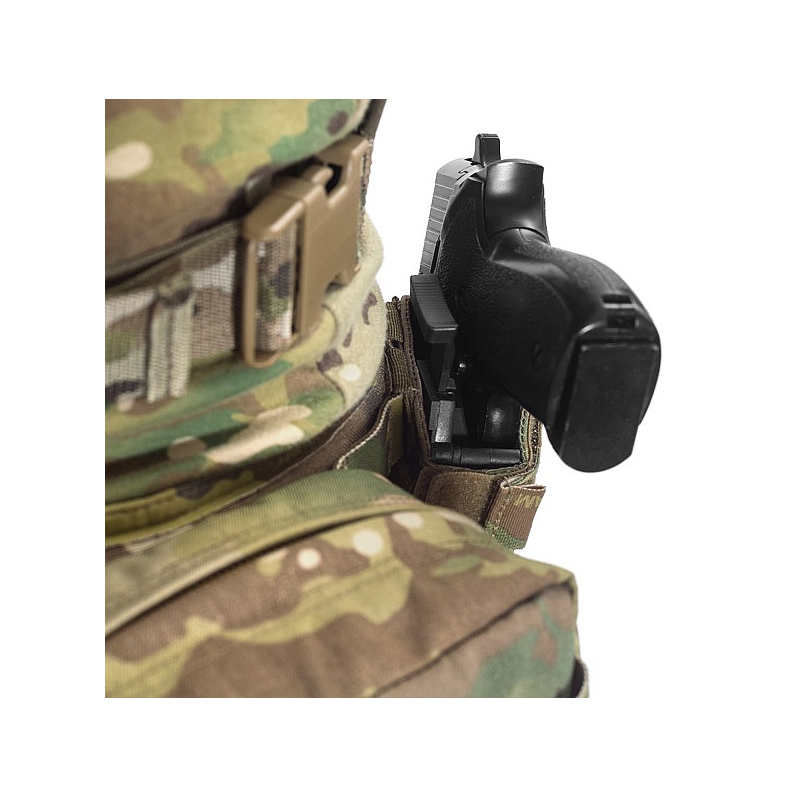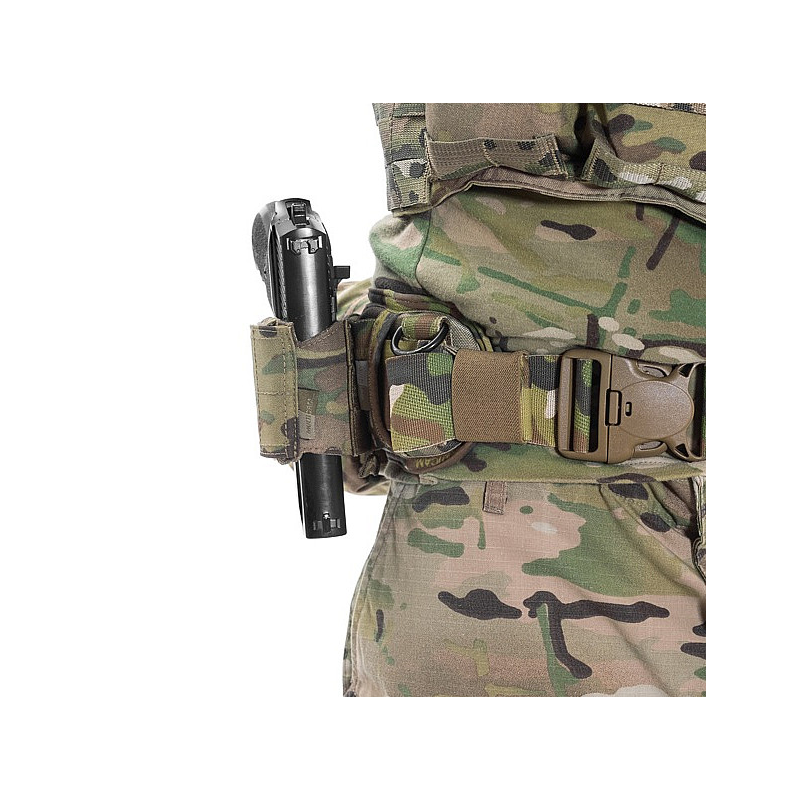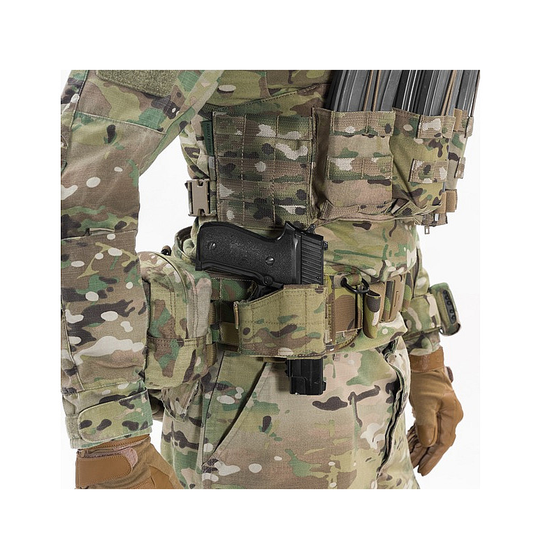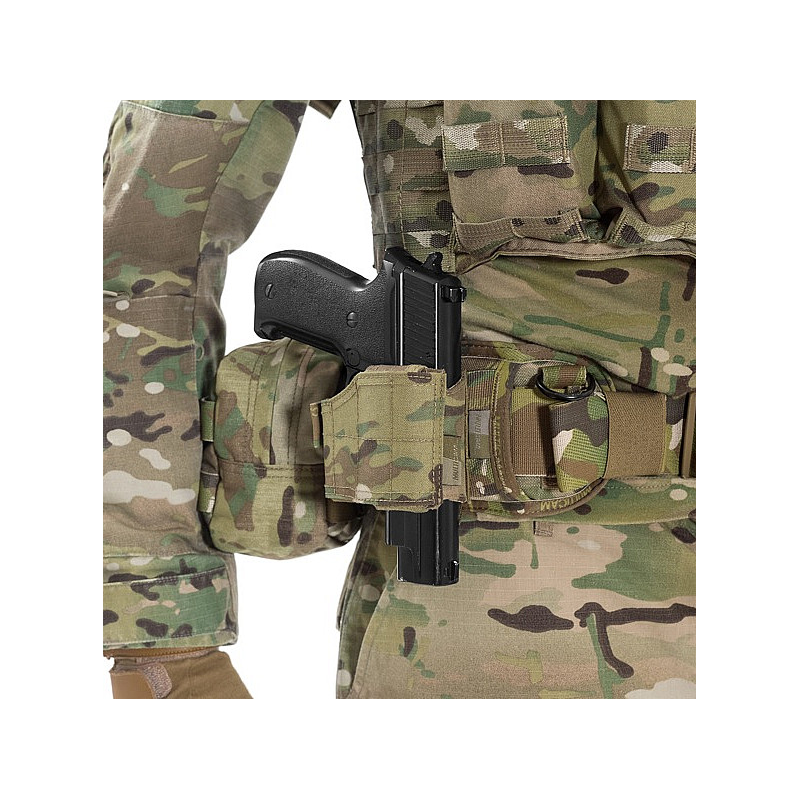 The rear of the holster has 3 rows of MOLLE webbing with 2 MOLLE arms, which allows it to be attached to a diverse range of Warrior Assault Systems gear such as the PLB belt, Frag Belts, Cobra belts and Rigger Belts. The UPH’s MOLLE also allows it to be attached to armour carriers and chest rigs such as the 901.