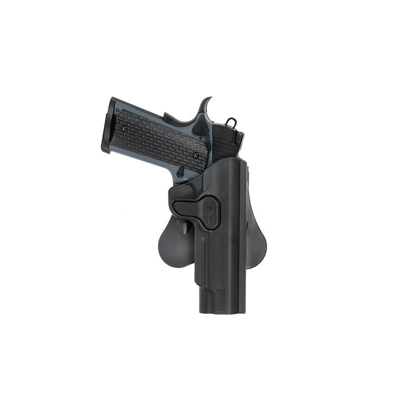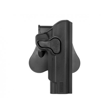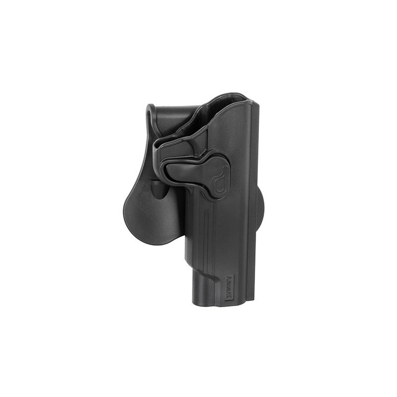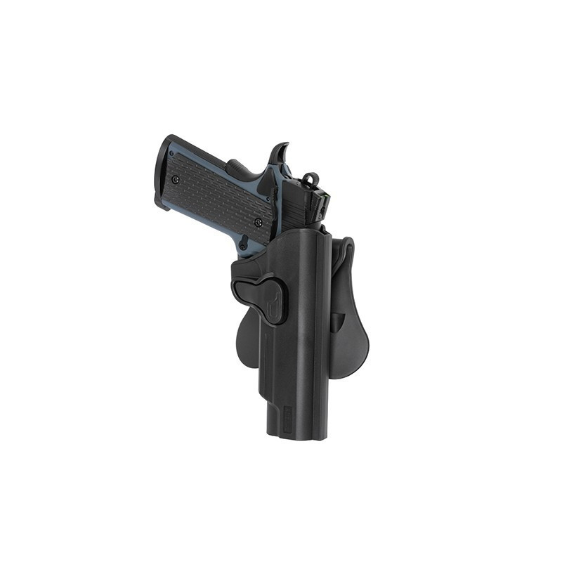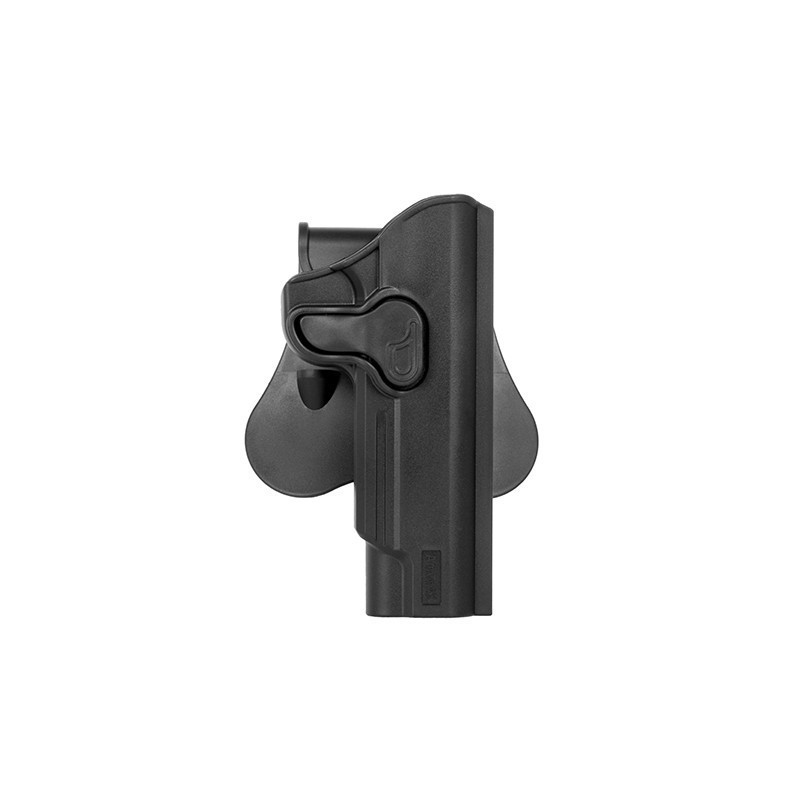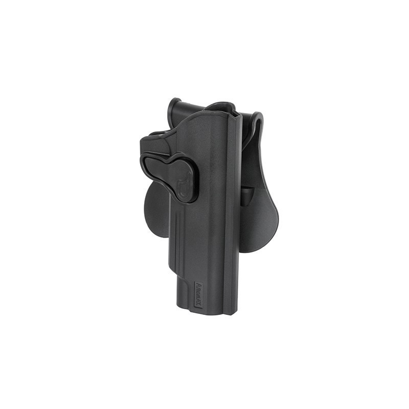 Amomax holster is compatible with 4 different carrying platforms –paddle (standard), belt clip, MOLLE, and drop leg platform.