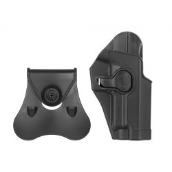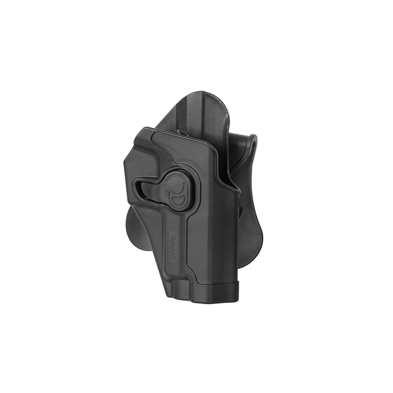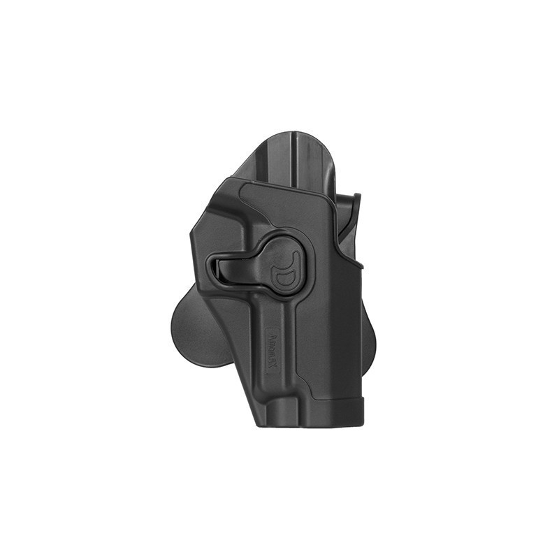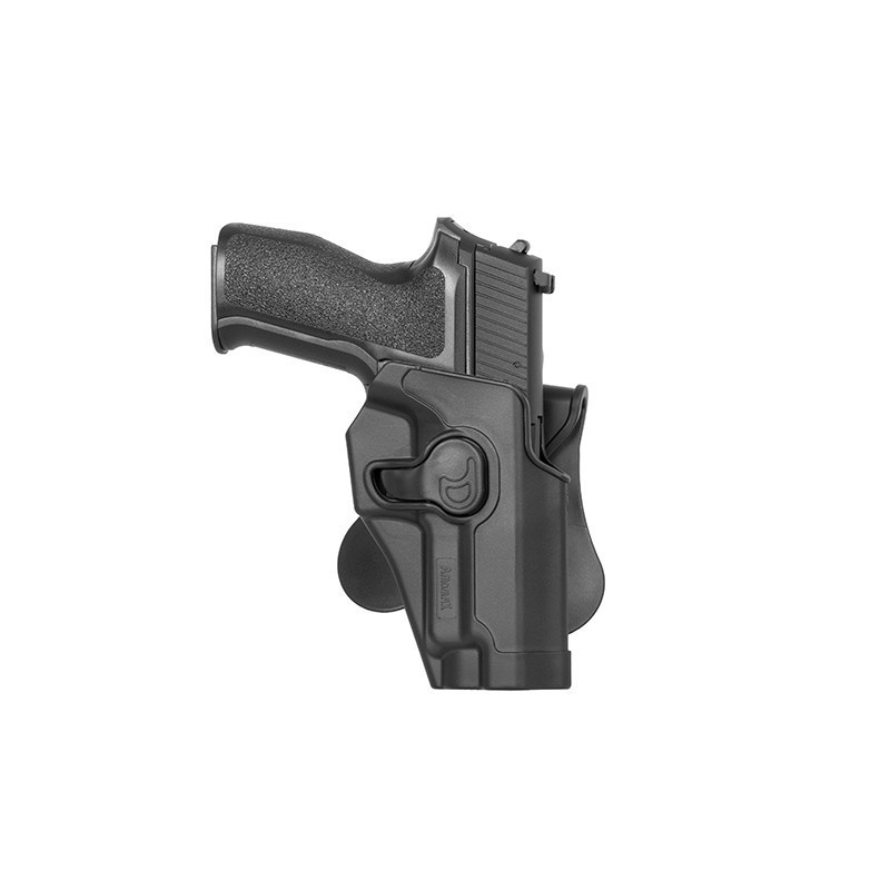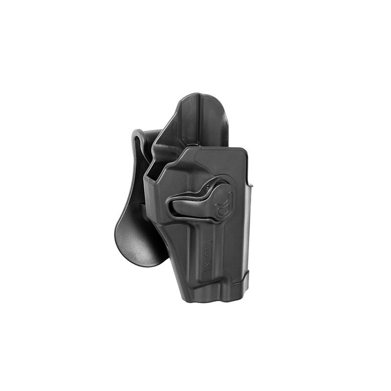Amomax holster is compatible with 4 different carrying platforms –paddle (standard), belt clip, MOLLE, and drop leg platform.