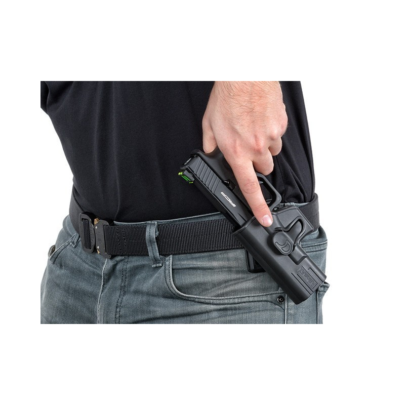 There are running and hiding included in most airsoft sports. Adjusting to fit belt width from 1" to 2" and snap-fit included, the belt clip can grab belt tightly in fast move.
