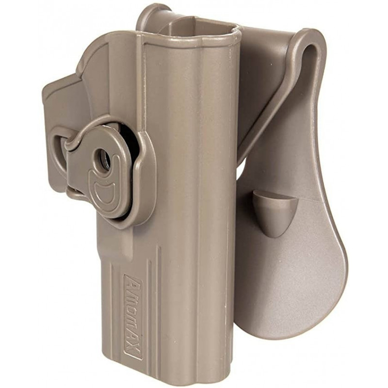 Amomax holster is compatible with 4 different carrying platforms –paddle (standard), belt clip, MOLLE, and drop leg platform.