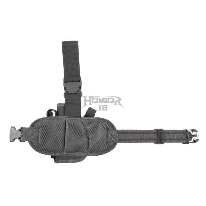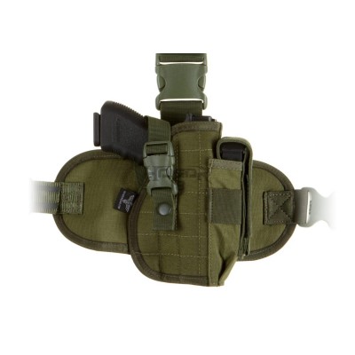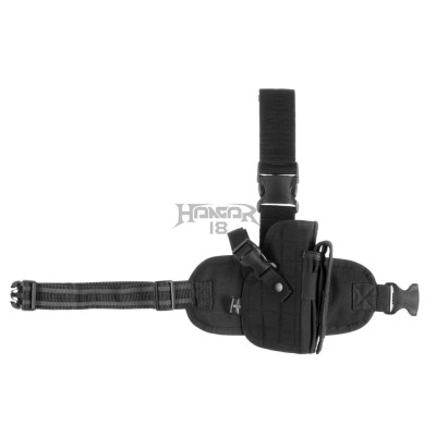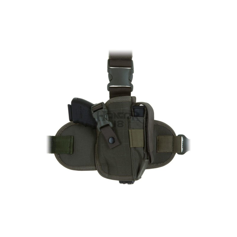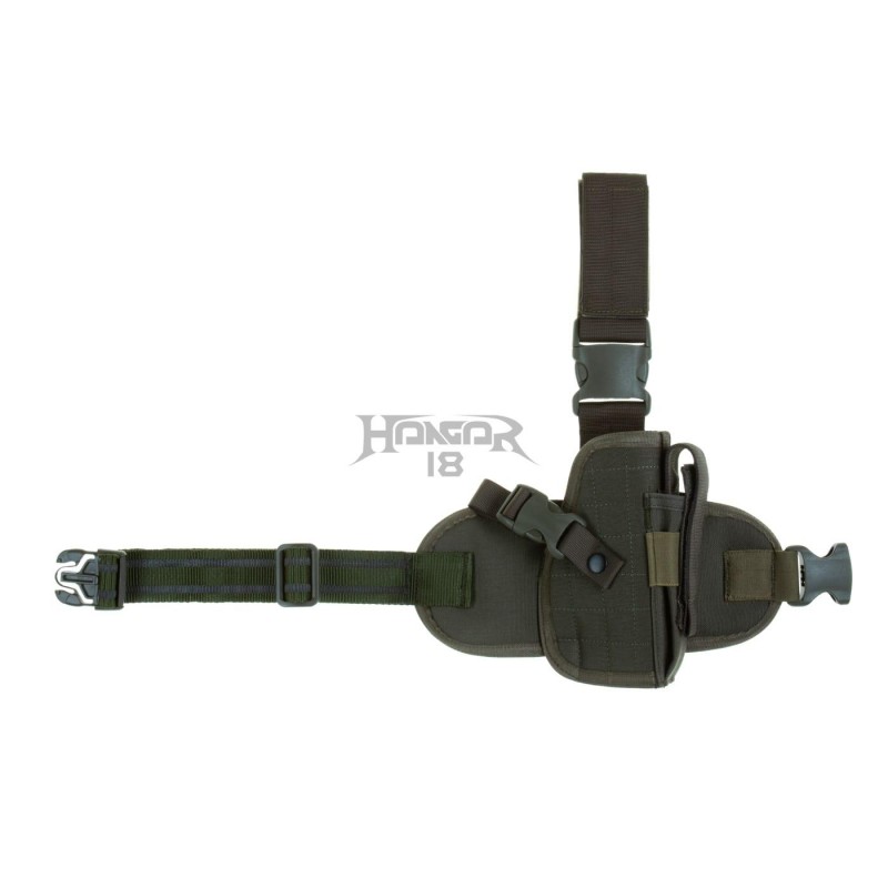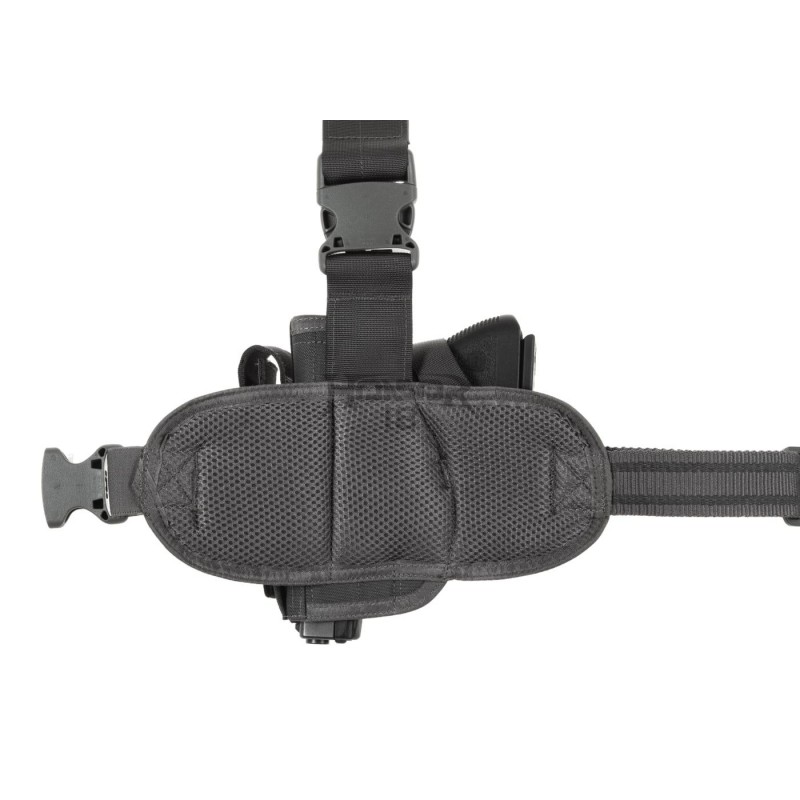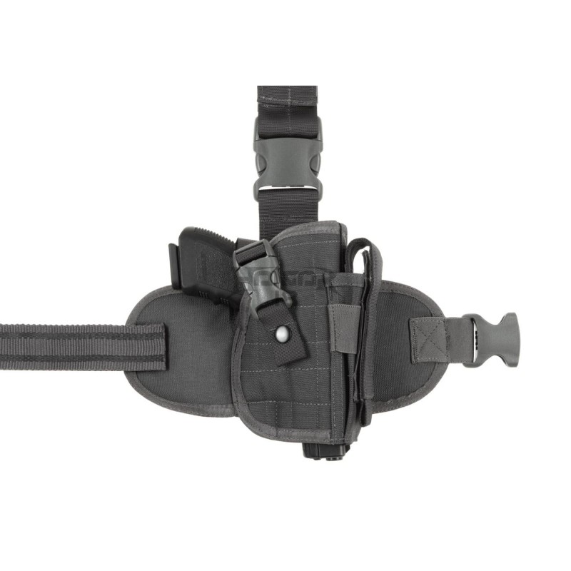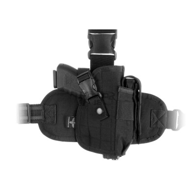 Universal Dropleg holster designed to fit a wide range of medium size pistols like for example Glock 17 or Beretta 92. It is outfitted with integrated magazine pouch and integrated leg panel - fastened with a belt clip and three non-slip elastic straps to the thigh.