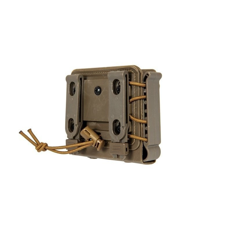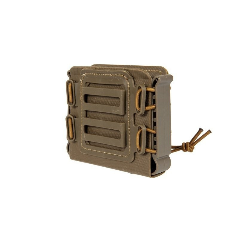 A fast type pouch made of durable polymer capable of holding a single 7.62, AK or similar carbine magazine. The pouch features a special elastic cord for the adjustment of the “opening” of the pouch that better adjusts the pouch to the contents and prevents magazines from falling out. The pouch can be attached to a belt with a maximum width of 45 mm as well as any equipment with MOLLE system.