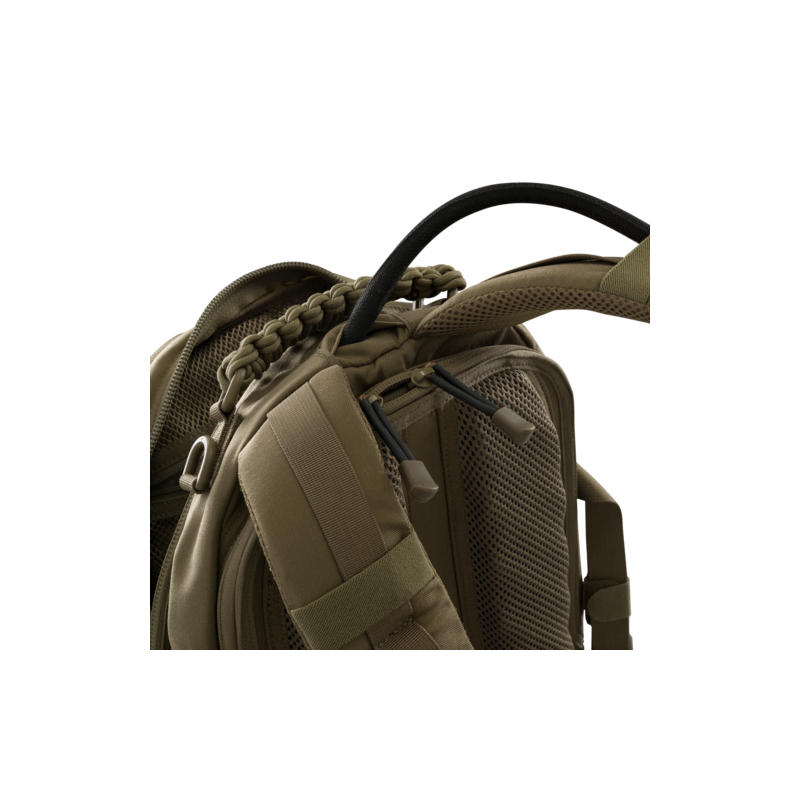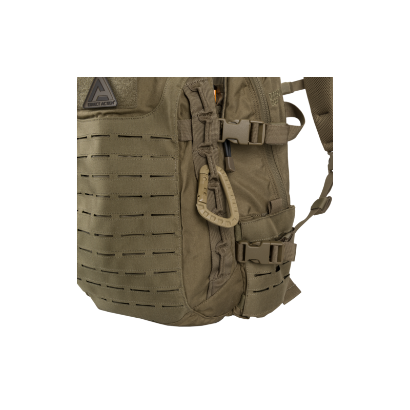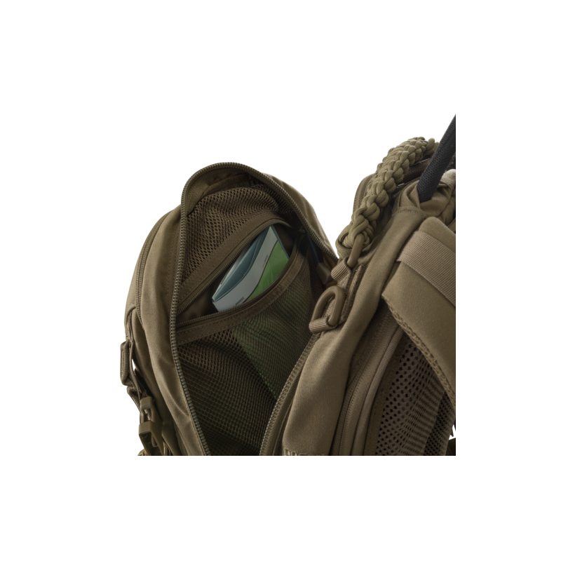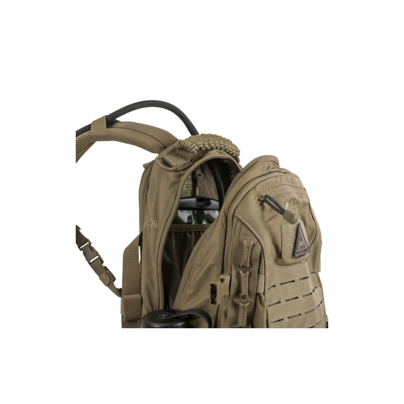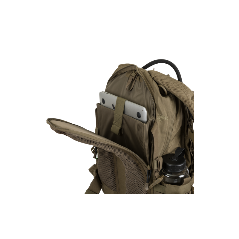Direct Action® Dragon Egg® is 25-liter capacity backpack for either short patrol duties or EDC use. The pack features two hydration bladder pockets – one in the main compartment and additional in the zipped back part. The rear pocket, thanks to padded sleeve, can be used for safely carrying multiband radio devices or notebook (15’’). Front pocket of Direct Action® Dragon Egg® features zipped mesh pocket and simple organizer for small essentials. Additional side pockets can carry small and flat items, after unzipping fit standard U.S. canteen. Laser-cutted system compatible with MOLLE/PALS makes the backpack not only fully modular, but also still maintains low profile look. Thanks to the egg shape, the pack has smaller height and width then other packs with similar capacity and makes it more comfortable with belt kits or ballistic vests. Suspension system is based on comfortable shoulder straps and internal stiffener in the back. Made of durable 500D Cordura® nylon fabric with water resistant coating.