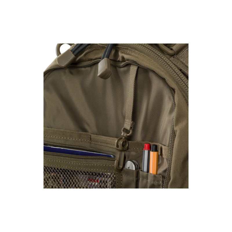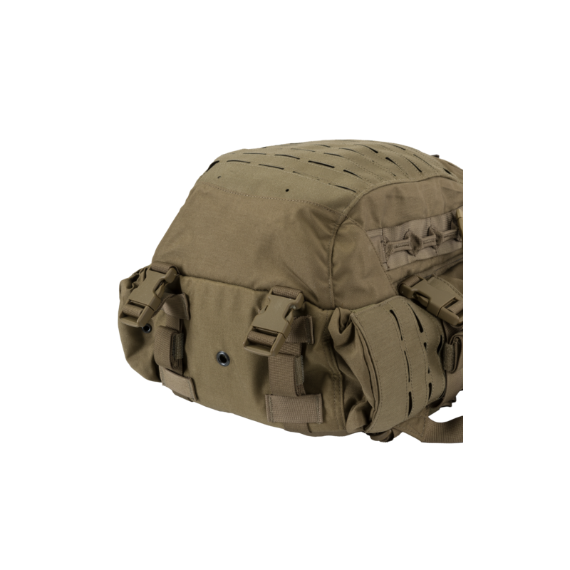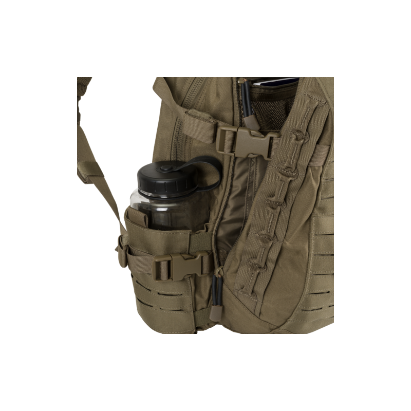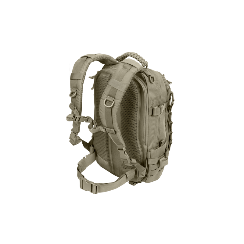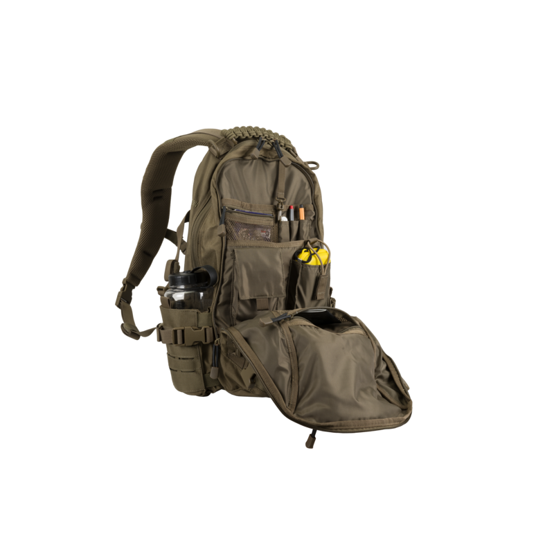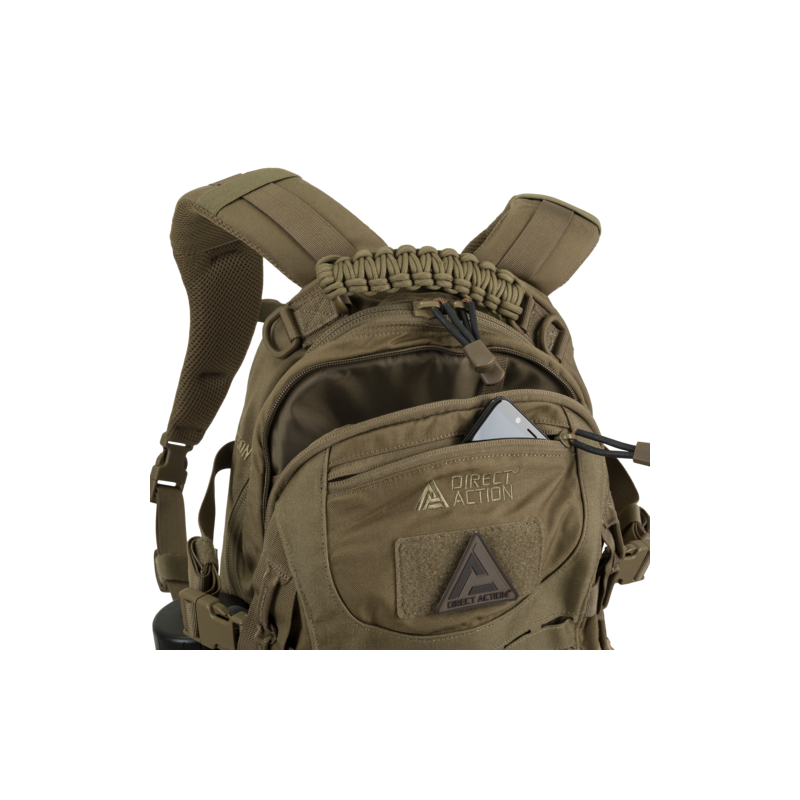 Direct Action® Dragon Egg® is 25-liter capacity backpack for either short patrol duties or EDC use. The pack features two hydration bladder pockets – one in the main compartment and additional in the zipped back part. The rear pocket, thanks to padded sleeve, can be used for safely carrying multiband radio devices or notebook (15’’). Front pocket of Direct Action® Dragon Egg® features zipped mesh pocket and simple organizer for small essentials. Additional side pockets can carry small and flat items, after unzipping fit standard U.S. canteen. Laser-cutted system compatible with MOLLE/PALS makes the backpack not only fully modular, but also still maintains low profile look. Thanks to the egg shape, the pack has smaller height and width then other packs with similar capacity and makes it more comfortable with belt kits or ballistic vests. Suspension system is based on comfortable shoulder straps and internal stiffener in the back. Made of durable 500D Cordura® nylon fabric with water resistant coating.