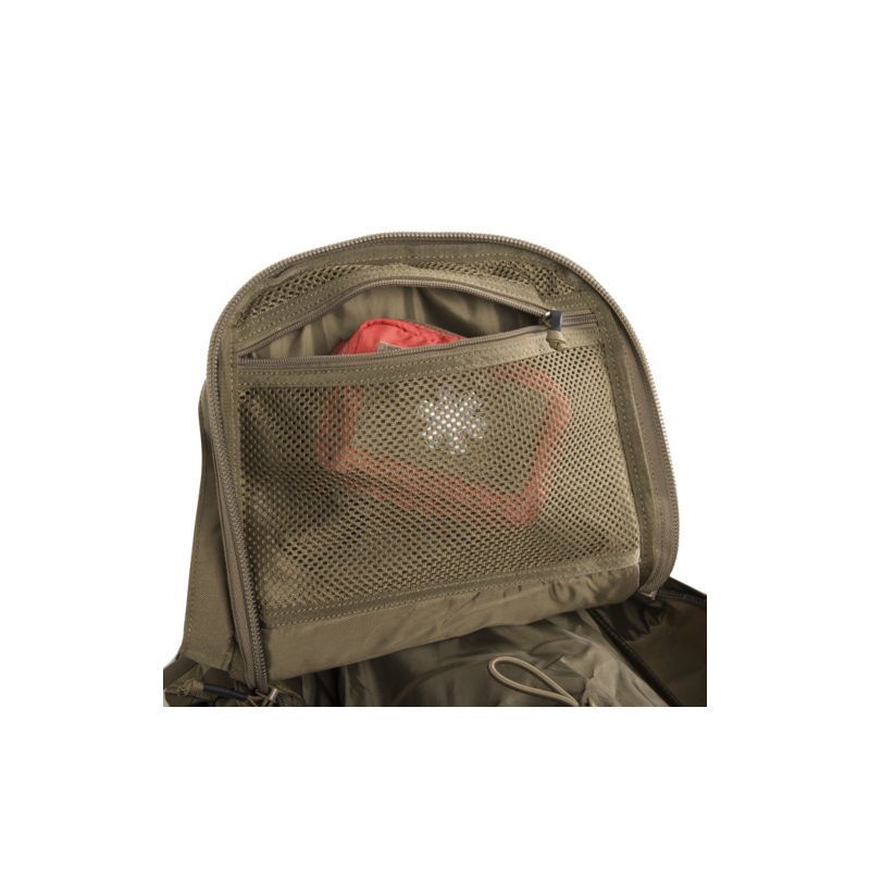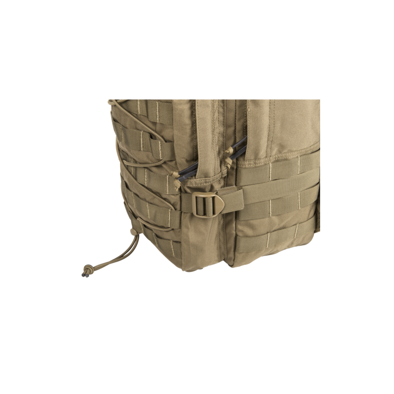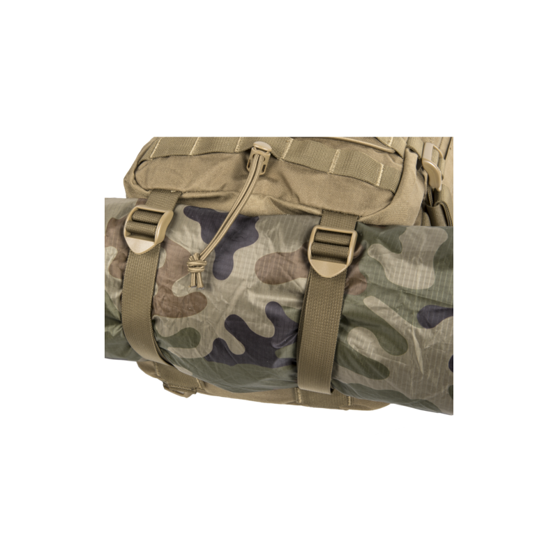 Raccoon Mk2 Backpack® has one external pocket, the size of the main compartment. Inside is a simple organizer for carrying additional items. The main chamber has one flat internal pocket and a camelbak holder. For heavy loads the simple, webbing hip belt distributes weight properly, while the straps allow for quick jettisoning the load. The outside is covered with webbing compatible with MOLLE/PALS system. Shockcord allows attachment of additional equipment like jackets, sleeping mat etc. At the bottom are two compression ribbons. Thoroughly redesigned layout, materials used and high quality make Raccoon an ideal backpack for both special ops and EDC. Hoop-and-loop panel size: 12 x 7.5 cm