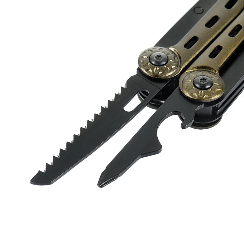 The M-Tac Multitool Type 5 is a robust and compact multi-functional tool, perfect for outdoor activities, EDC (Every Day Carry), and professional use. Crafted from 402 stainless steel with a black anti-reflective coating, it combines durability with an ergonomic and functional design.