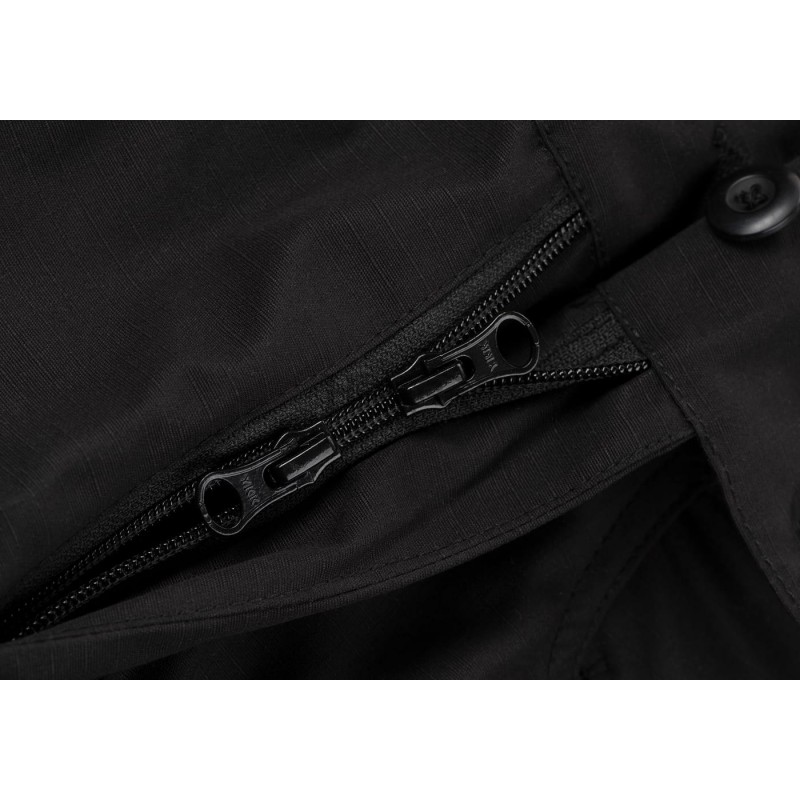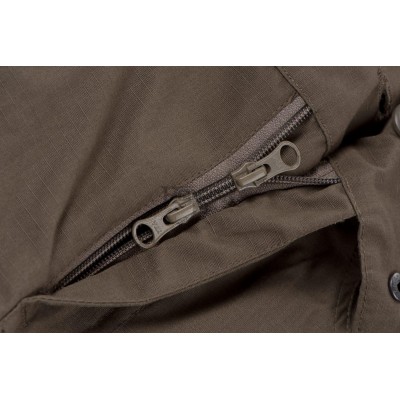 At the front, we can find high-quality YKK zipper with hook and loop closure. A strap runs around the inner waistband to adjust its size. Similar straps are located around the ankles to adjust fit to the user footwear.