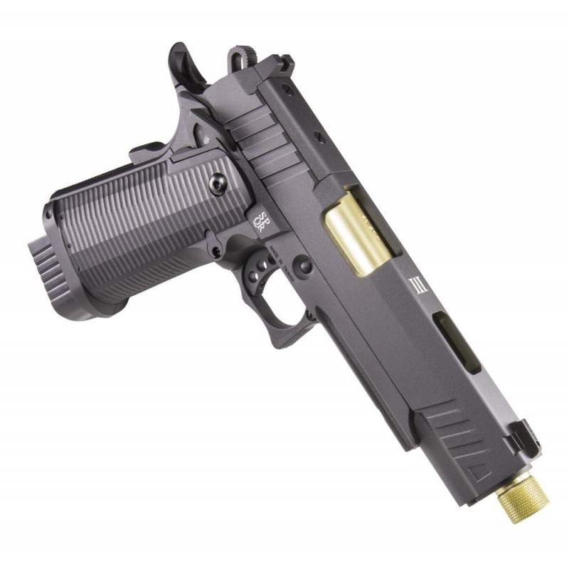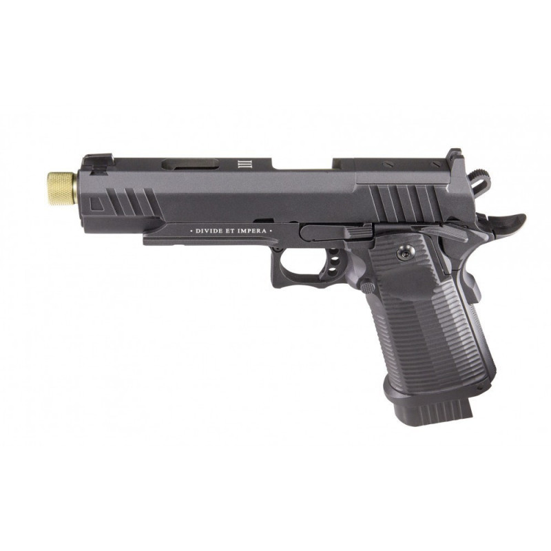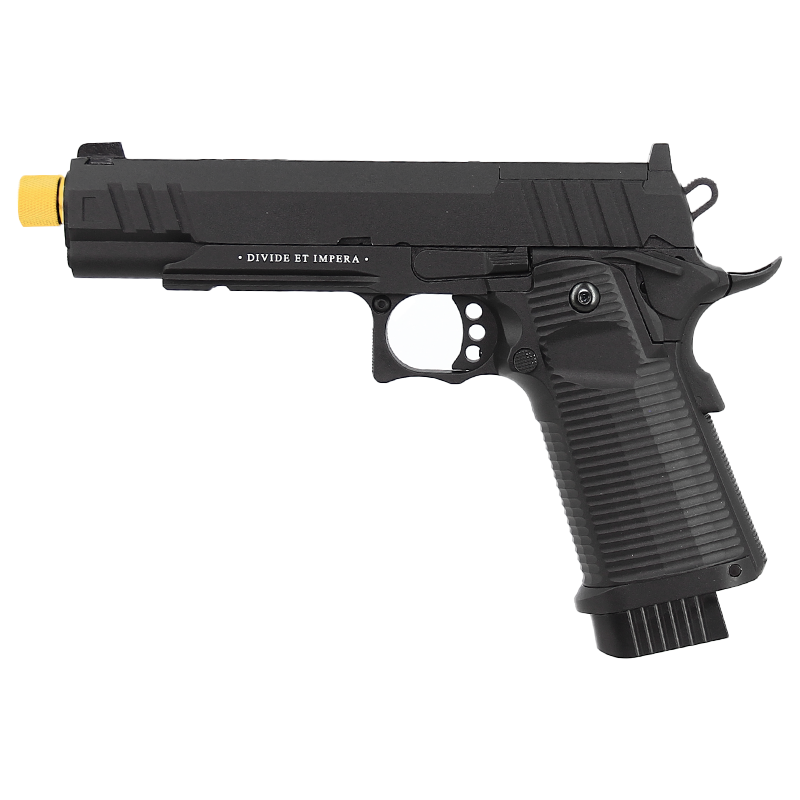 Secutor presents us with a wonderful replica of a pistol with HI-CAPA design. In this way, we have a gun with a large capacity of gas and bbs, with a modern and attractive design. Internally it has high performance parts that guarantee a realistic blowback and a great recoil, both in distance and accuracy. It should be noted that it incorporates fixed rear sights and a base that allows us to place an RMR red dot.