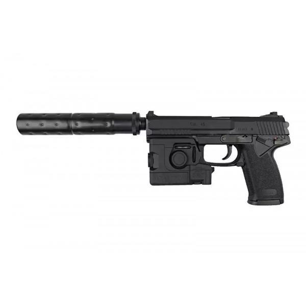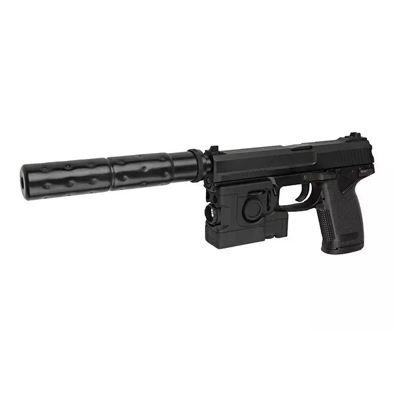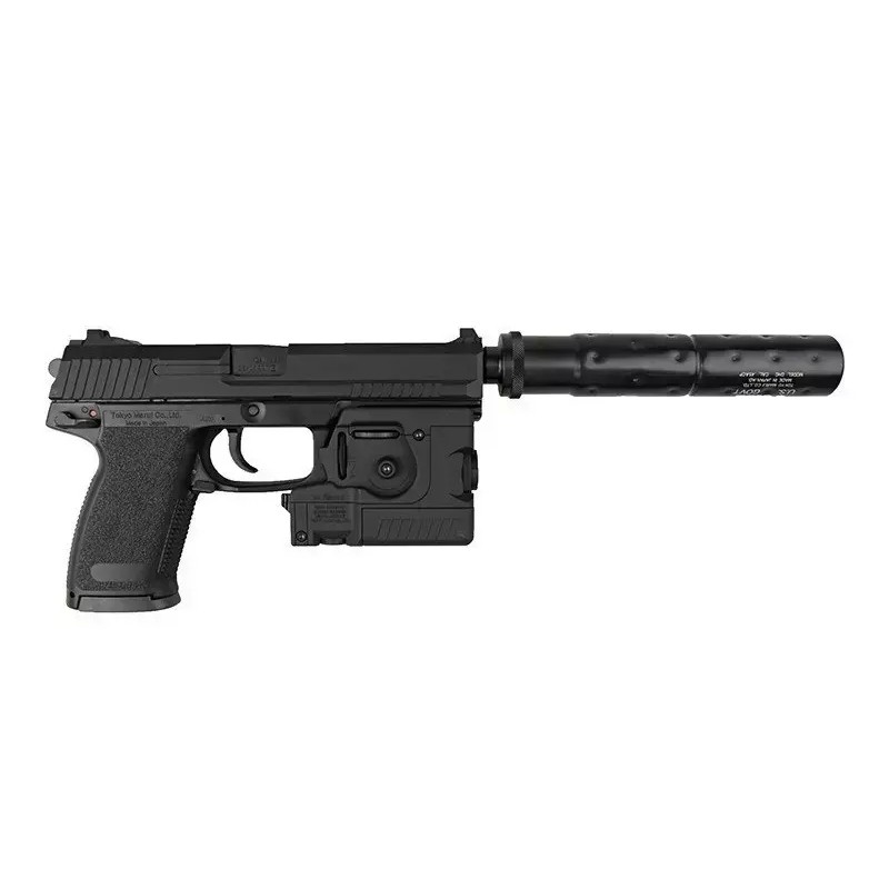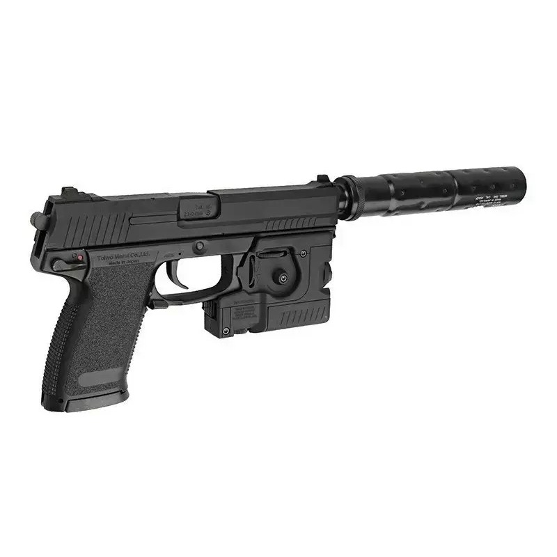 The SOCOM Mark 23 gas gun set, known as a legendary pistol, includes a silencer and L.A.M. It combines practicality for gaming with a visually impactful design for collectors.
