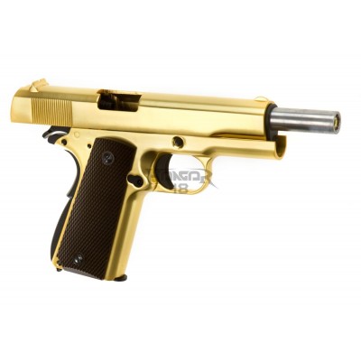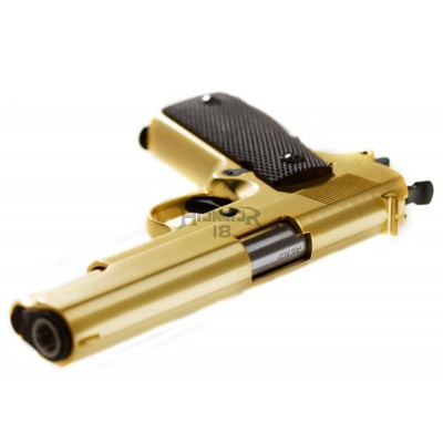 The M1911 implements a robust gas blowback (GBB) system that imitates recoil and slide action during firing. It provides an exceptional and realistic user experience, like shooting an authentic pistol. Furthermore, the handgun offers an adjustable hop-up mechanism to improve the BB's accuracy and stability during the shot.