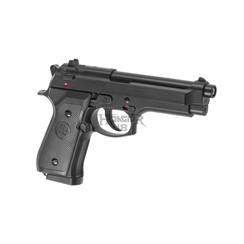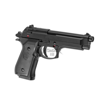 The Mod. 92 FS, manufactured by Beretta, is a precisely crafted and officially licensed replica with the manufacturer's markings imprinted on the replica slide. The visually appealing item is created to reproduce the real version of the military sidearm. It is powered by CO2, weighs around 0.6 kg, has a length of 22 cm, and offers a magazine capacity of 26 rounds. The Mod. 92 FS uses a 128 mm long inner barrel, generates approximately 370 FPS, and operates in a semi-automatic firing mode.