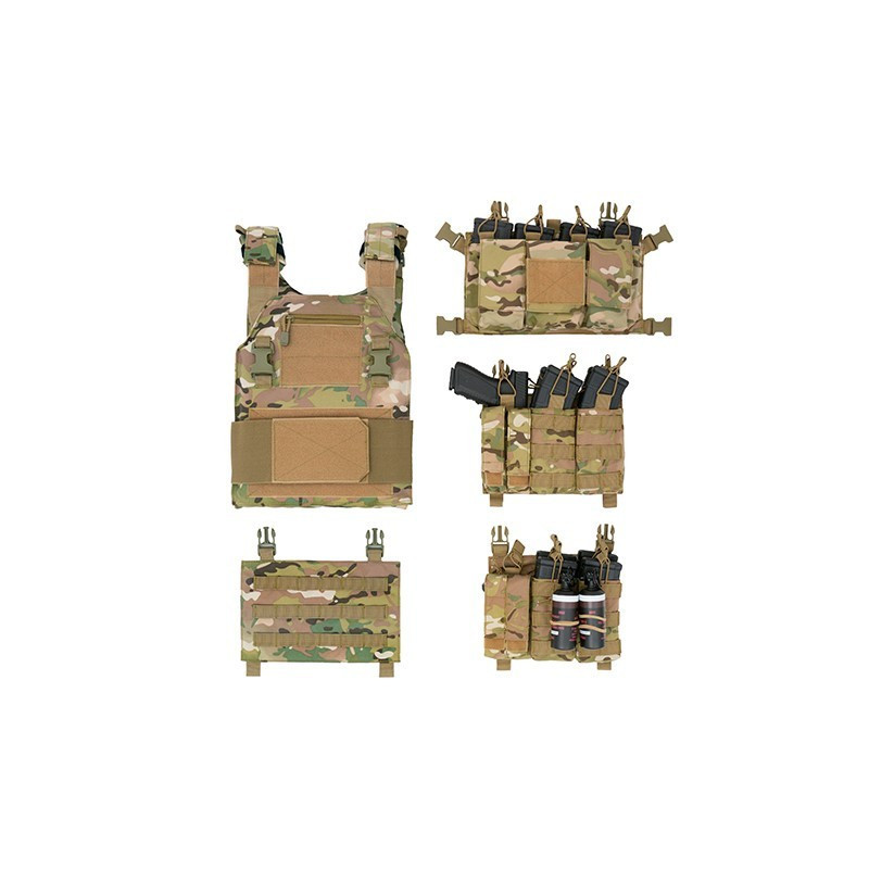 The plate carrier vest offers more protection and personalization. All bags are fixed by the MOLLE system, they are not permanent and can be replaced if necessary.
