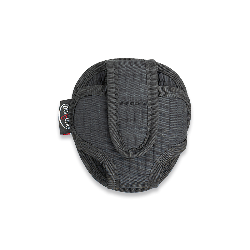 Polymer injection molded. Double slot loop with adjustable inclination with screws. Clip hold. Compatible with the most popular flashlight diameter +- 3,3 cm.