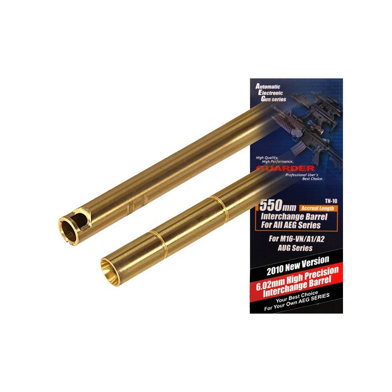 Very well made 6.02 mm interchange barrel that have orginal length provaids precision and accuracy. Barrel is made with double chamfer, that fits for all type of hop up chamber blockade. Gently made barrel endding provides safe mounting and dismouting of hop up rubber. Compatible with M16-VN/A1/A2/AUG