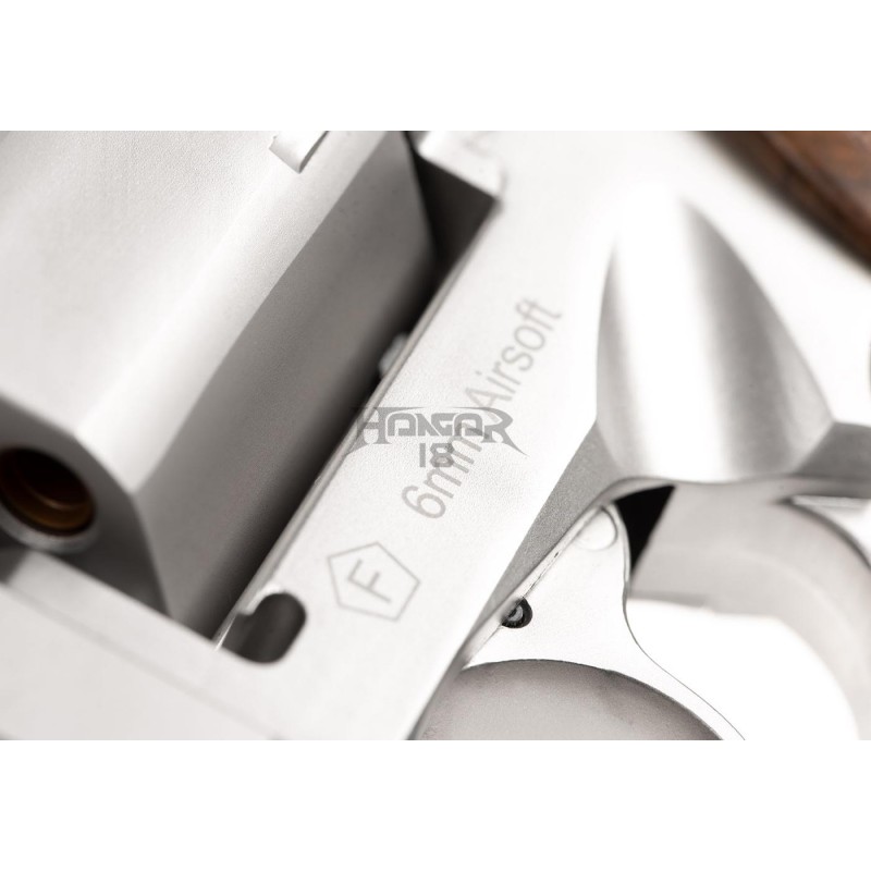 The Rhino 50DS model utilizes a revolving cylinder comprising six chambers, each storing a single BB in a mock cartridge. An excellent feature is a realistic mechanism for feeding dummy shells loaded into the cylinder. The Rhino 50DS perfectly reflects the appearance of the original, has a lower axis bore, and fires BBs from the bottom of the cylinder. It also utilizes the Double Action/Single Action trigger mechanism and high-visibility, adjustable iron sights.