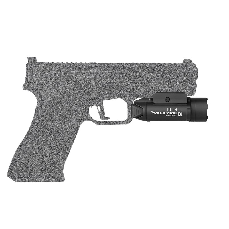 The PL-3 Valkyrie handgun flashlight is a compact light module with an adjustable sliding key block. Powered by two CR123A batteries, it has a maximum output of 1,300 lumens and a maximum range of 225 meters. Compared to its predecessors, its light output has been increased by 8%, making it perfect for field search, self-defense, and law enforcement.