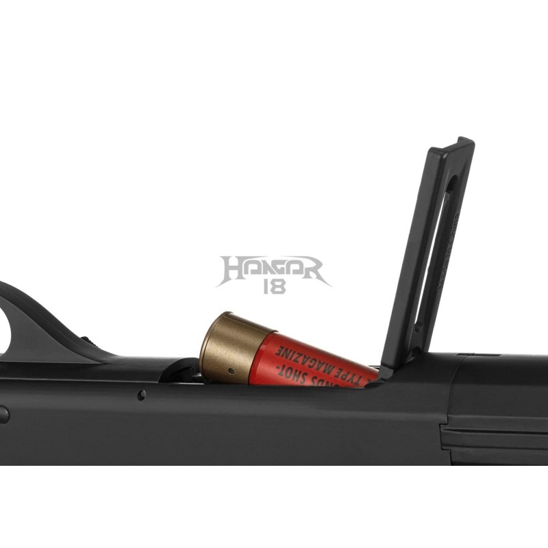 Made from high-quality ABS polymer and aluminum, this 1050mm long spring shotgun replica is fed from a replaceable magazine styled as a typical shotgun shell, with a capacity of 30rds.