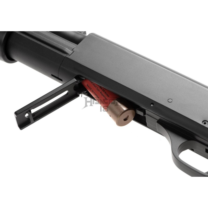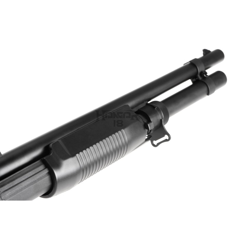 Made from high-quality ABS polymer, this 1040mm long spring shotgun replica is fed from a replaceable magazine styled as a typical shotgun shell, with a capacity of 30rds. CM360L weights around 1750g and shoots in 3rds burst from three internal barrels with a typical pump-action reload motion. Buttstock with a rubber pad and a black forend is manufactured in a classic version with mountings for carrying slings.