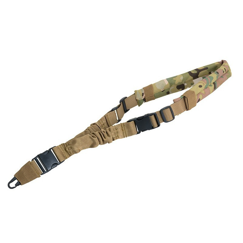 Padded Single Point Sling for right and left-handed shooters. Fully adjustable to fit any gear or body armor. Features a quick detach release buckle, bungee cord sewed inside and an HK style clip.