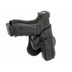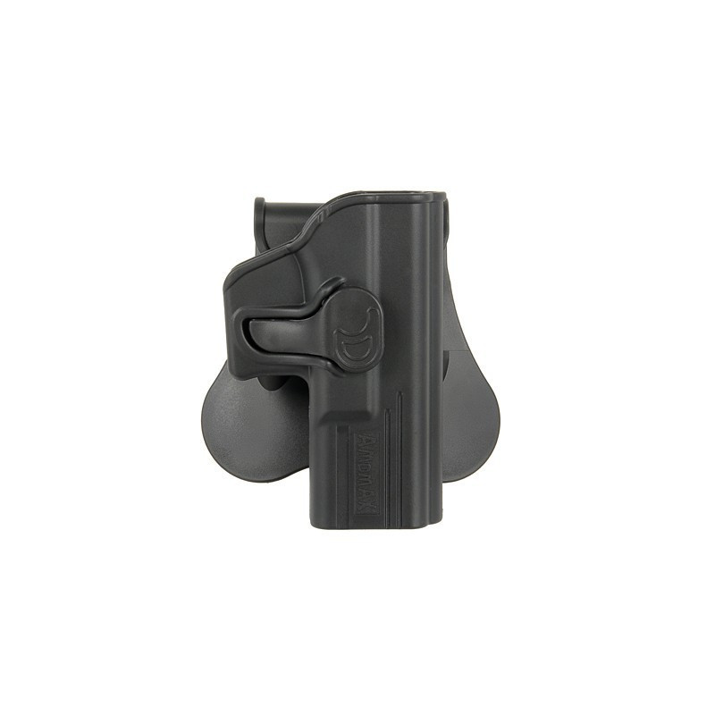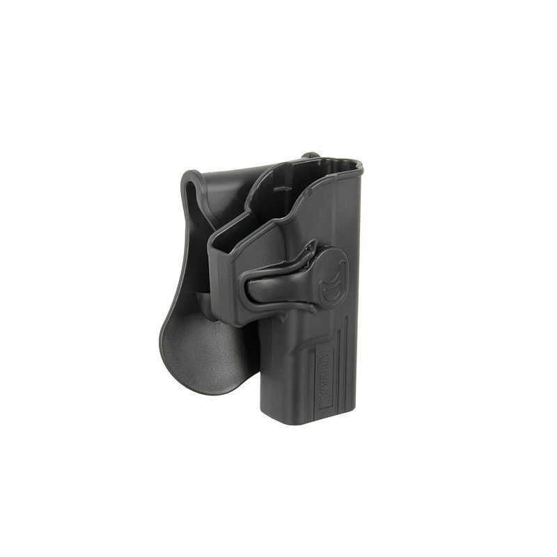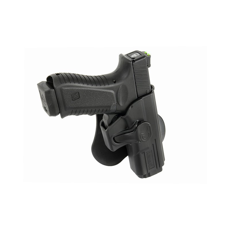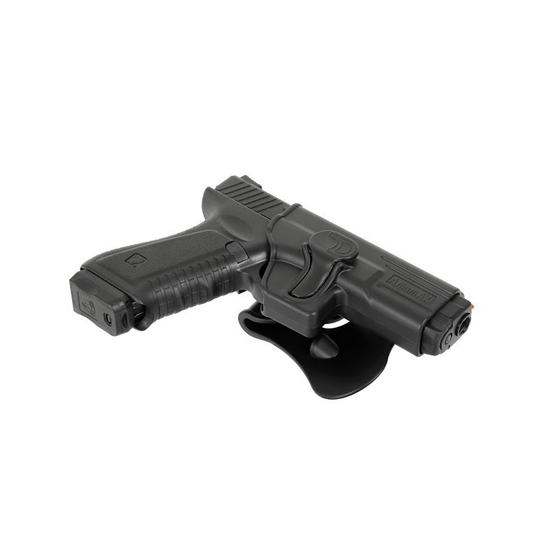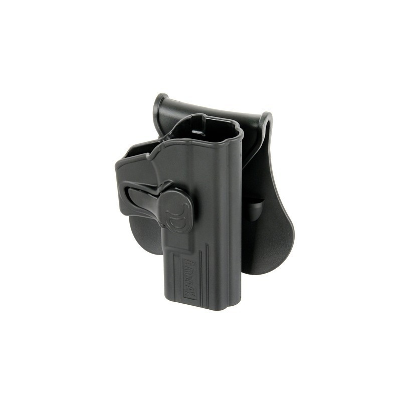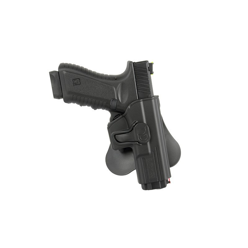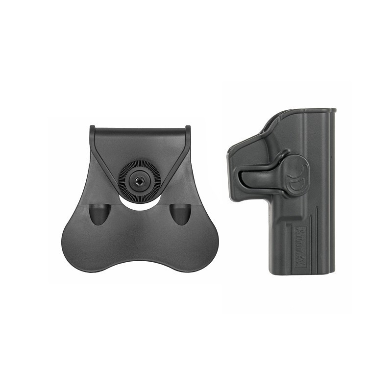 Amomax holster is compatible with 4 different carrying platforms –paddle (standard), belt clip, MOLLE, and drop leg platform.