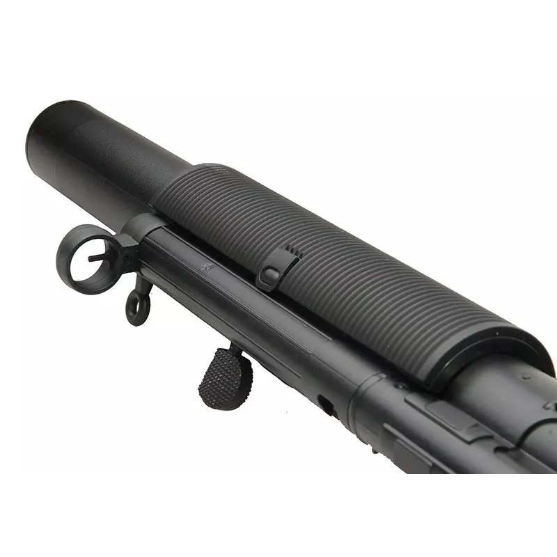 The JG067MG by JG Works® is a compact electric replica inspired by tactical submachine guns, ideal for CQB environments and players seeking mobility without sacrificing performance. Its body is made of reinforced ABS, with metal parts in the barrel, trigger, sights, and magazine, ensuring durability and lightweight handling.