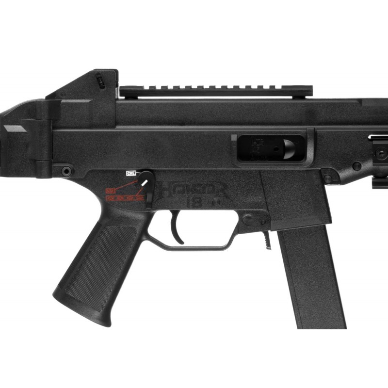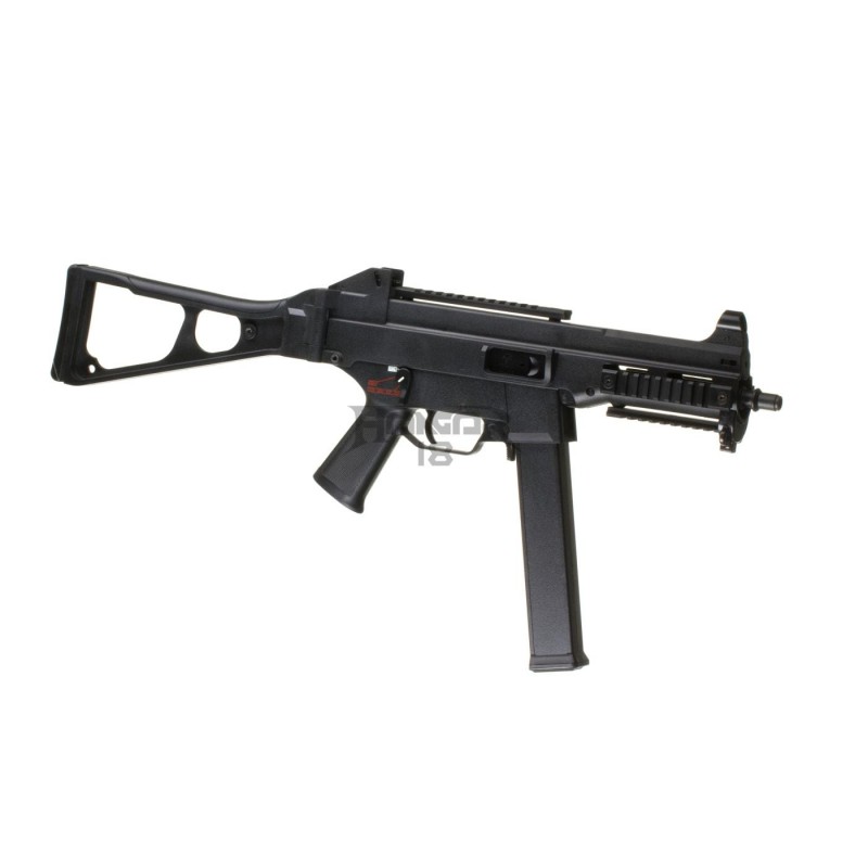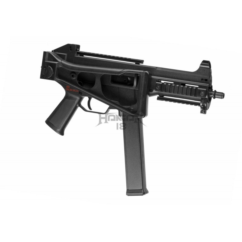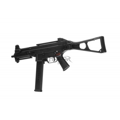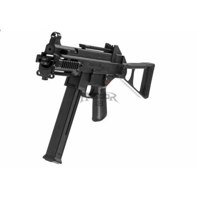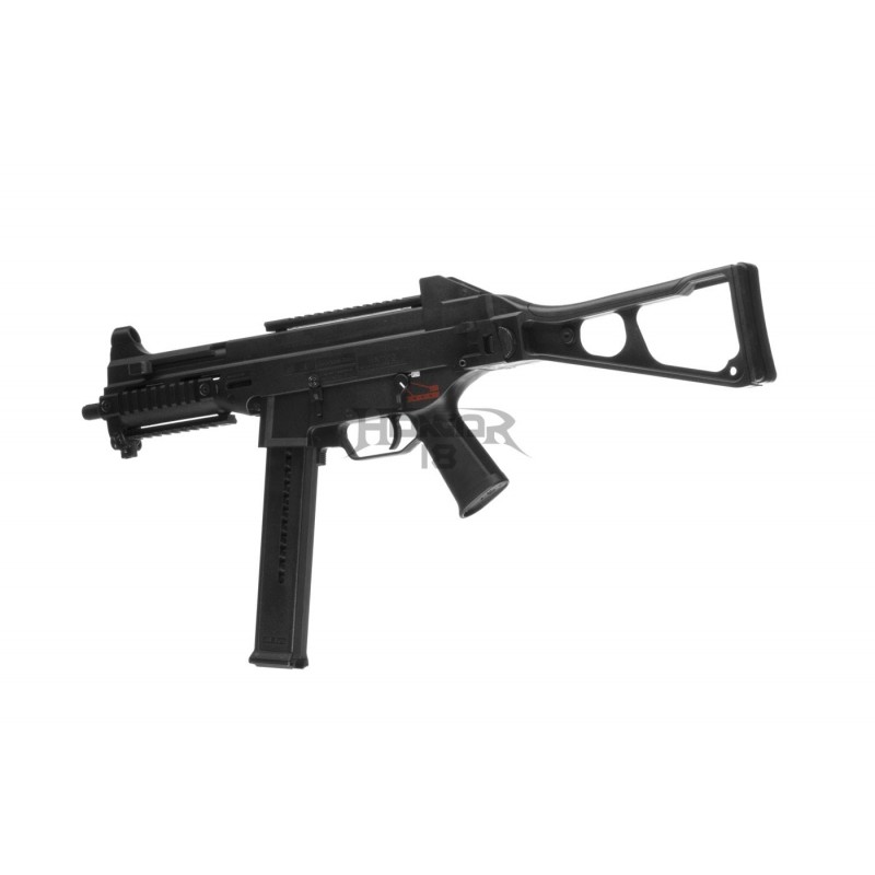 The UMP Sportsline BLK, manufactured by Heckler & Koch, is a machine gun replica that operates in semi- and full-automatic modes. This visually appealing and highly accurate replica faithfully reproduced the appearance of the actual firearms. The model bears official H&K markings and is the successor to the legendary MP5 designed primarily for the American law enforcement sector. In addition, the UMP was produced in a widespread and popular .45 ACP caliber in the US. An interesting note to point out is that the original gun is used by many SWAT units, where it has proven its worth.